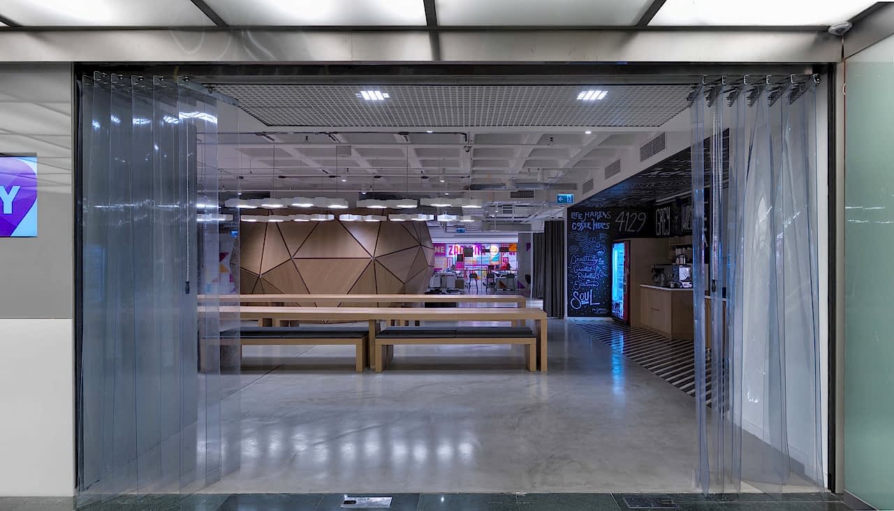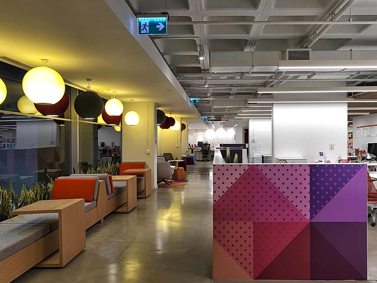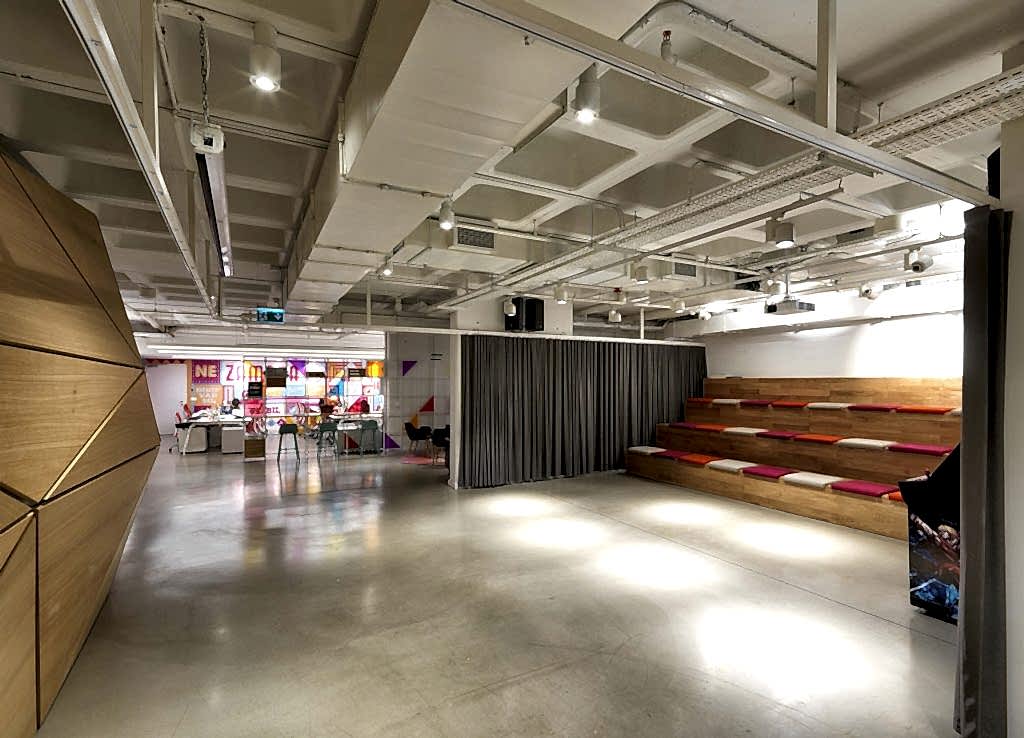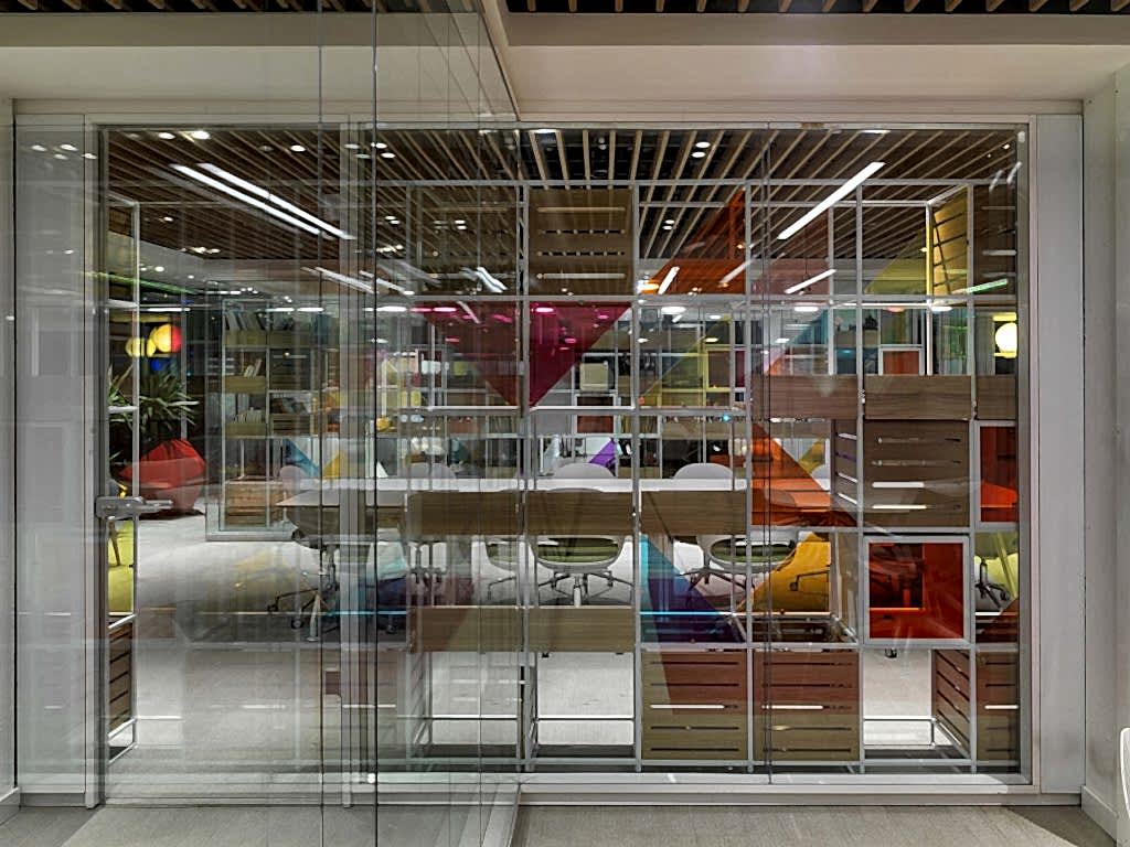 Ofisin merkezinde, farklı disiplinlerden insanları bir araya getirmek amacıyla kafe, konferans alanı ve dijital medyanın sınırlarını zorlamak için kurulan teknoloji laboratuvarından oluşan büyük bir ortak alan tasarlandı. Hepsinin merkezine ise poligon kabuktan oluşan bir ‘pod’ yerleştirildi. Beyin fırtınası için kullanılacak bu mekan, aynı zamanda poligonal şekillerin bir araya gelmesiyle temsil edilen ‘dijital olasılık’ fikrinin merkezini oluşturuyor.