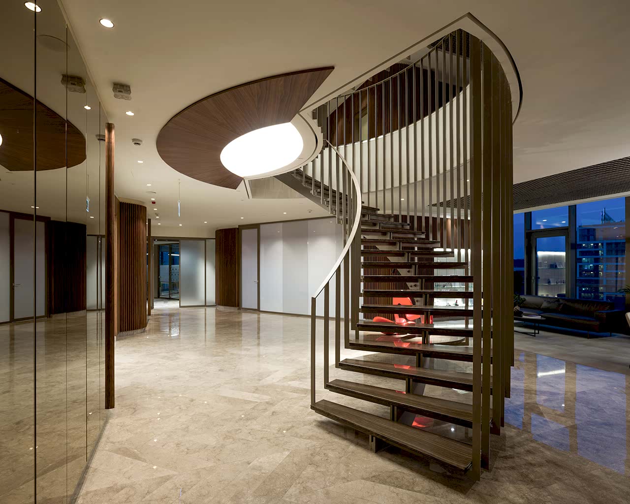 Binanın bütün katlarında, yönetim katlarını ayrı tutarak, aynı mimari dile sahip bir tasarım yapmayı başardık. Katlarda bulunan sosyal alanlar ve binanın üç noktasına yerleştirdiğimiz üç ana toplanma noktası, 2. Katta bulunan kokteyl alanı, 4. Katta bulunan spor salonu ve 8. Katta bulunan terasa açılan kafe alanı, ile çalışanlara iş dışında bir araya gelebilecekleri, sosyalleşebilecekleri, streslerinden uzaklaşabilecekleri ve keyif alabilecekleri alanlar sunduk.