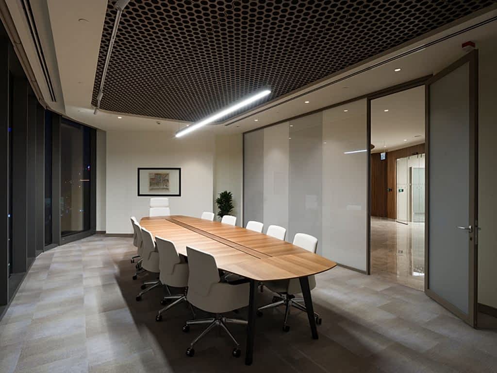 Binanın en üstte bulunan son iki katı, 12. ve 13. katlar, yönetim katları olarak ayrıldılar. Bu katlardaki malzeme ve renk seçimlerinin hem Alternatif Bank’ın yenilikçi, genç ve dinamik kimliğinin altını çizer hem de refahını ortaya koyar nitelikte olmasına özen gösterdik. Binanın geri kalan katlarında malzeme ve renk seçimleri yalın tutulurken, çalışma alanının açık ofis olarak geniş tutulmasına ve bu alanlara doğal ışık sunulmasına dikkat edildi. Tavanlardaki kaset döşemelere sadık kalınarak yüksek tavanlı ferah çalışma ortamları yaratıldı. Özellikle tüm katlarda esnek tasarımlar ile değiştirilebilir alanlar bırakarak ofisin banka çalışanlarının ileride değişebilecek kullanım şekillerine ayak uydurabilmesini amaçladık.