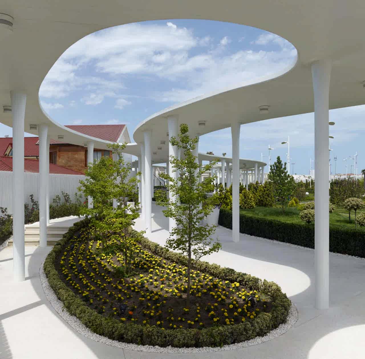 Böylece, farklı eğlence ve zaman geçirme alanları, 58 dönümlük bu projede homojen bir şekilde yayılmış ve her bölgesi kullanılabilen değerli bir işletme olması hedeflenmiştir. Yürüme yolları, arazide birbirinden kopuk duran bir çok farklı alanı çerçeveleyen ve bağlayan akışkan bir unsur olarak önem kazanmaktadır. Düğün alanı, trambolin, botanik bahçeleri, golf gibi birçok farklı kullanım, tüm alanı saran saçak ile birlikte, kendi içinde ilişkilenmektedir.