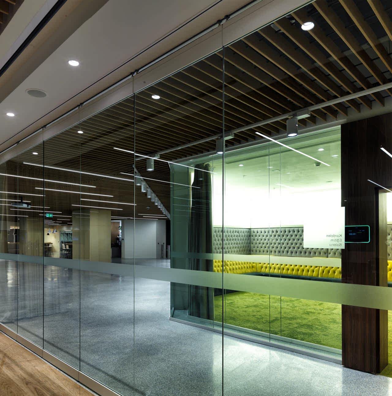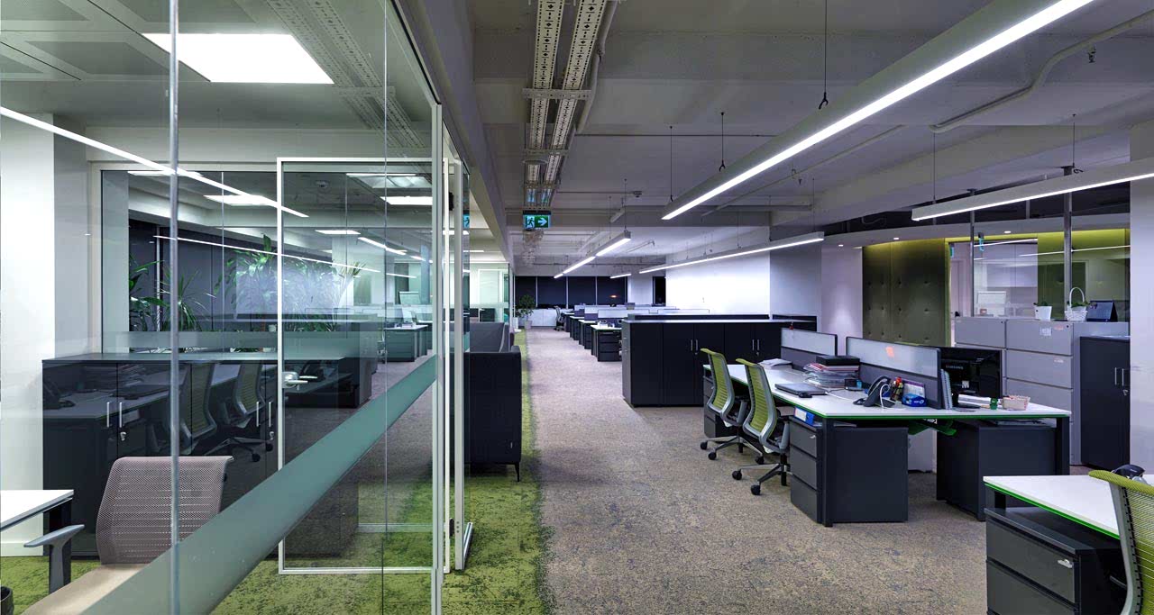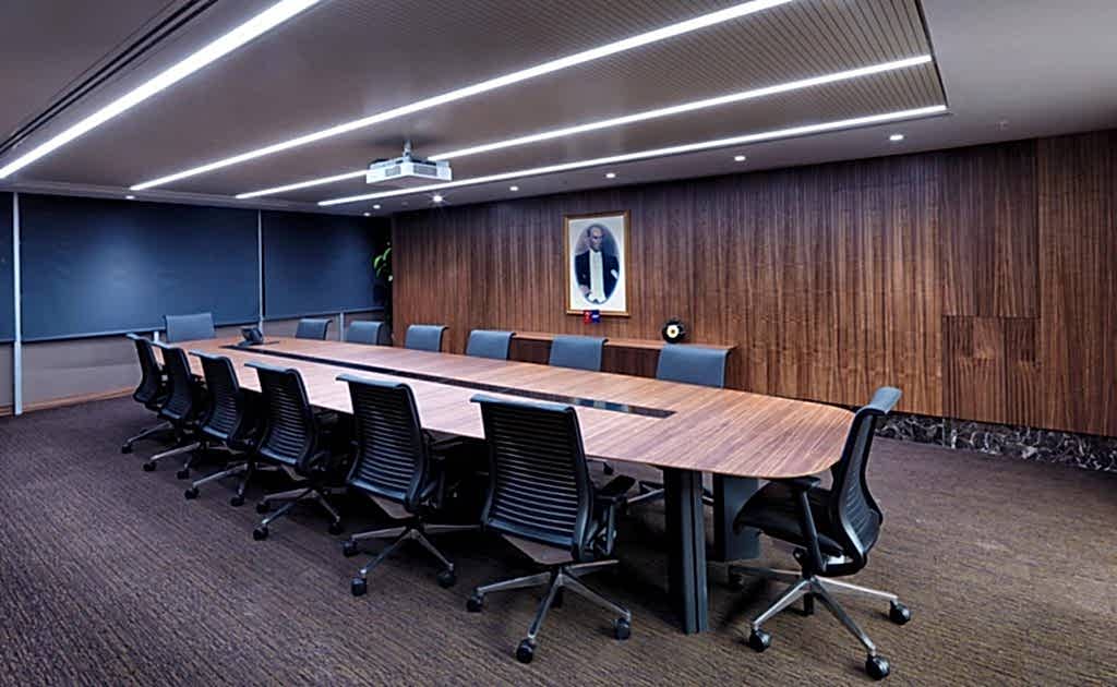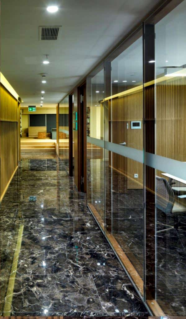 Yeni bir yapı olmasına rağmen düşük tavan kotları ve ofis kullanımına uygun olmayan plan şeması içine güncel gereksinimleri karşılayacak bir planlama yapılmaya çaba gösterilmiş, kullanılan kumaş yüzeylerle hem akustik konfor sağlanmaya çalışılmış, hem de ofisin genel basıklığının hissedilmemesi sağlanmıştır.