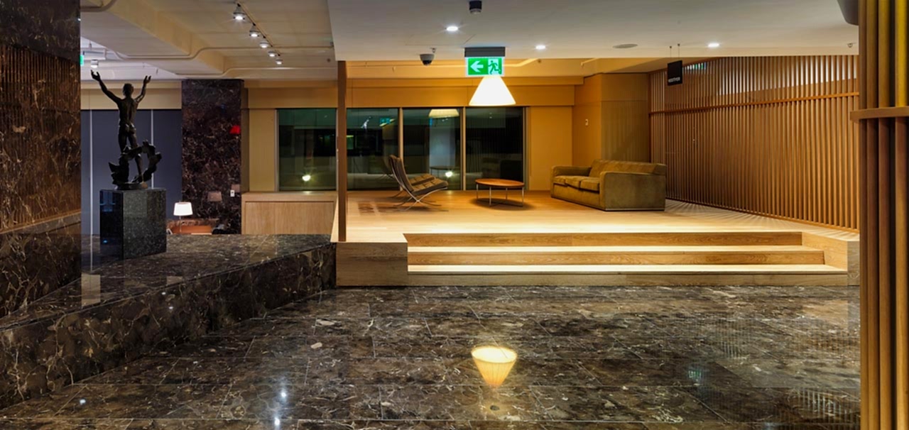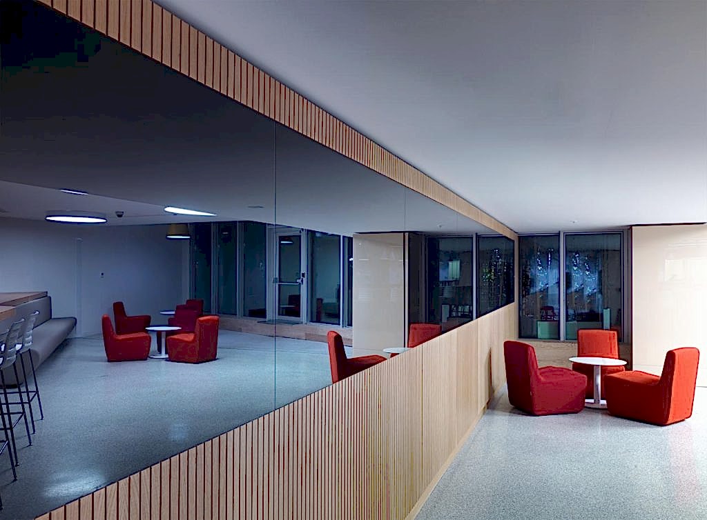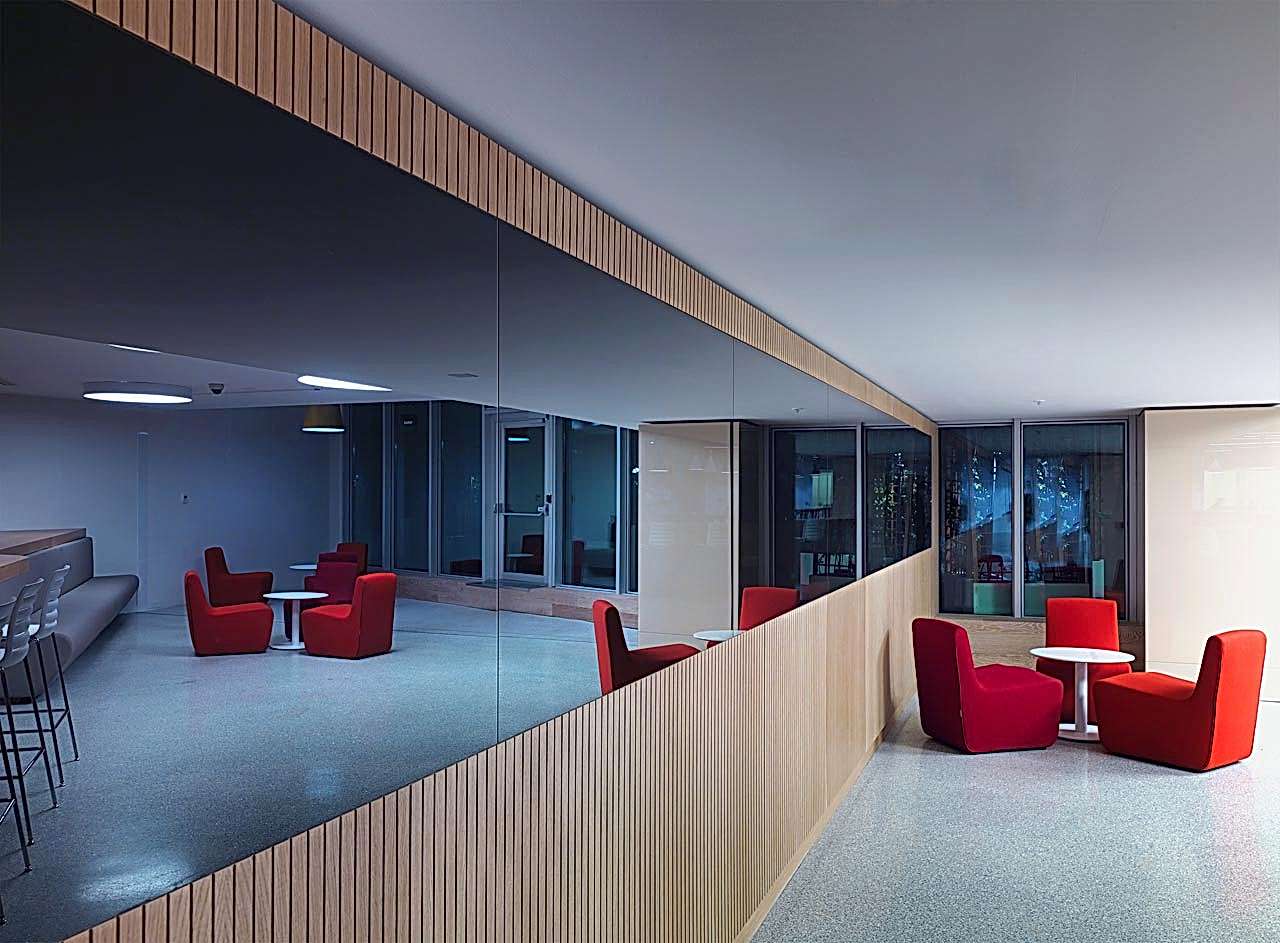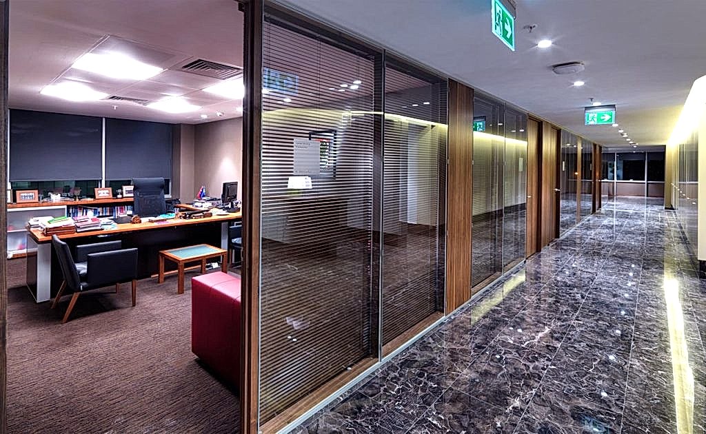 Yeni bir yapı olmasına rağmen düşük tavan kotları ve ofis kullanımına uygun olmayan plan şeması içine güncel gereksinimleri karşılayacak bir planlama yapılmaya çaba gösterilmiş, kullanılan kumaş yüzeylerle hem akustik konfor sağlanmaya çalışılmış, hem de ofisin genel basıklığının hissedilmemesi sağlanmıştır.