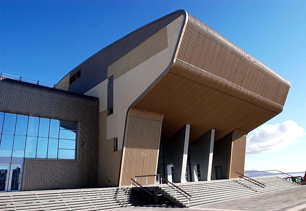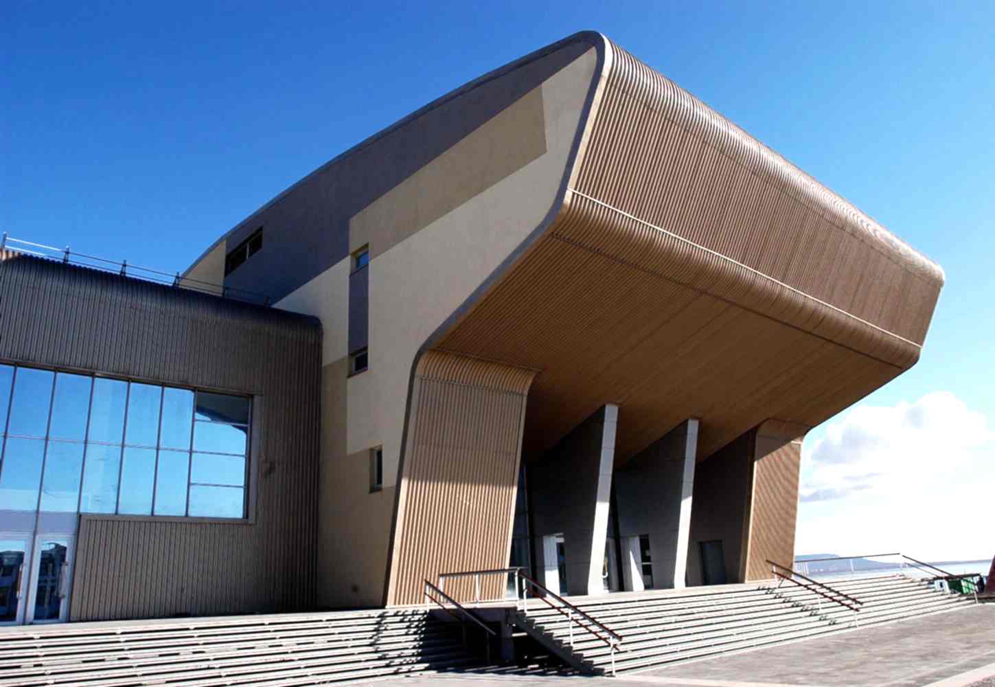 Program 4 ana bloktan oluşmaktadır: Müze, diskotek, konser salonu ve eğitim merkezi. Binanın ağırlıklı olarak ofislerin bulunduğu, halice doğru bakan kısmı mümkün olduğu kadar sağır tutularak hakim rüzgara karşı korunma amaçlanmıştır. Bina da aynı kentin topografyası gibi aerodinamik form ve yumuşatılmış hatlarla tasarlanmış ve binada rüzgar yoluyla kar birikmesine yol açabilecek noktalar yok edilmiştir. Binanın hakim kütlesi işlevinden dolayı yine konser salonu bölümü olarak kalmıştır.
