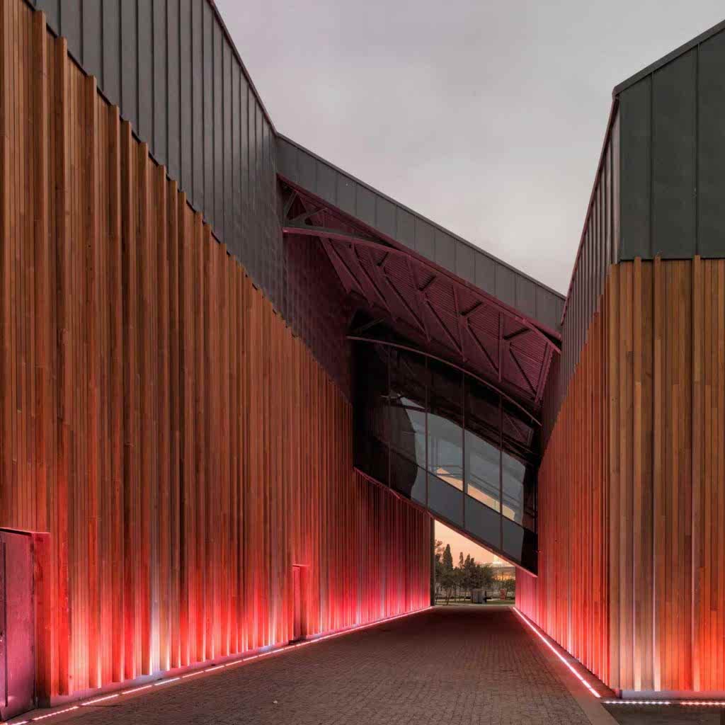 Bakü’nün rüzgarlı ve yağmurlu iklimi nedeniyle, binaların önünde buluşma alanları yaratmak amacıyla, geniş saçaklar düşünülmüştür. Mevcut endüstriyel karakter, çinko çatı ve ahşap farklı yüzeyler ile oluşturan hafif degaje cephe ile endüstriyel algısını korumuştur. Bakü’nün güneye doğru uzanan büyük sahilyolu promenade’nının en son noktası bu alana kadar geldiği için, insan trafiğini binaya yönlendirebilmek ve koyun sonuna doğru döndürebilmek için peyzaj çalışmaları da gerçekleştirilmiştir. Enerji santralinden sökülmüş olan bobin, türbin, elektrik direği gibi endüstriyel unsurlar temizletilmiş ve peyzaj elemanı olarak kullanılmıştır. Bina 2014 yılı itibariyle hizmete açılmıştır.