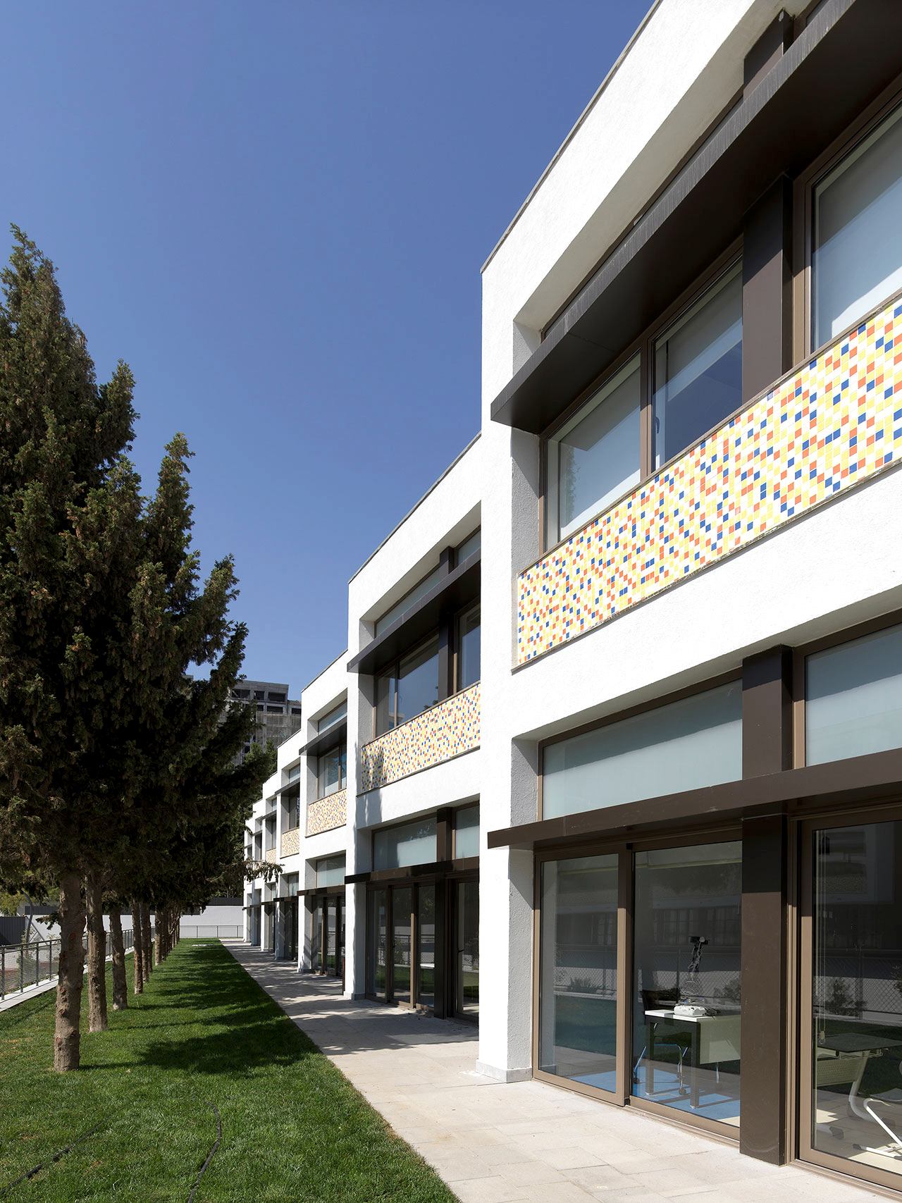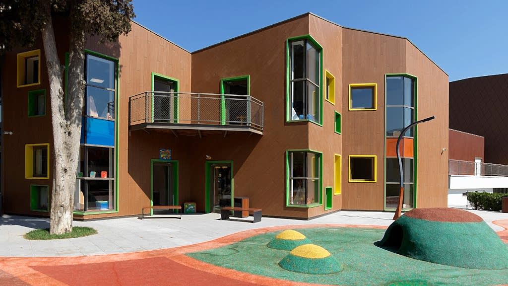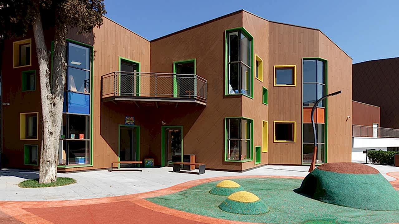 Alanın kuzeyinde yer alan B blok, anaokulu binası olarak işlevlendiriliyor. Yapının kırıklı formu ise alandaki mevcut çınar ve sedir ağaçların konumlarından kaynaklanmakta. Çocuklara ve yetişkinlere göre farklı yüksekliklerde yerleştirilen pencereler, yapının kimliğini belirliyor. Yaş gruplarına göre ayrılan sınıflara ek olarak, geniş koridorlar çocukların oyun oynayabileceği alanlar olarak kullanılıyor. Sınıfları koridorlardan ayıran bölücü mobilyalar, kullanılan şeffaf malzemeler ile sınıf pencerelerinden gelen gün ışığı koridorlara taşınıyor, sınıf içlerinde ise oyuncak dolapları ve kitaplık olarak kullanılıyor.
