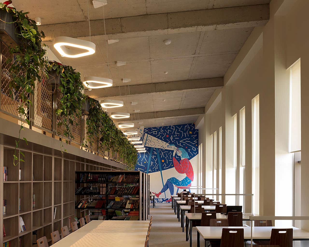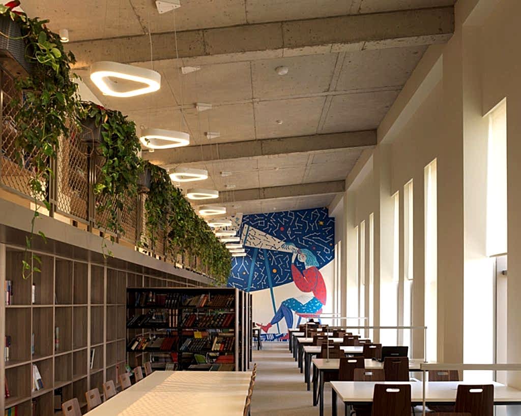 İlkokul binası olan C blok ve lise binası olan D blok, yarı kapalı alanları ve kampus içindeki yerleşimleri ile kendi oyun bahçelerini ve tören alanlarını tanımlıyor. Yapıların güney cephesinde yer alan sınıflar gün ışığını en verimli biçimde kullanabilmek amacıyla binaya dezakse biçimde yerleşiyorlar. Yaş gruplarına göre ayrılan 3 kattan oluşan lise binası ve 2 katlı ilkokul binasının her katı farklı renk koridorlar ve mobilya duvarlar ile esnek koridor-sınıf ilişkileri yaratıyor. Gün ışığını koridorlara taşıyan ve koridor-sınıf arasında ayırıcı görevi üstlenen mobilyalar; lise koridorlarında kilitli öğrenci dolapları olarak kullanılırken, ilkokul sınıflarında ise kitaplık ve araç-gereç dolaplarına dönüşüyor. Her iki okul binası da köprüler ile ortak etkinlik alanları ve kapalı spor salonunun yer aldığı A blok yapısına bağlanıyor.