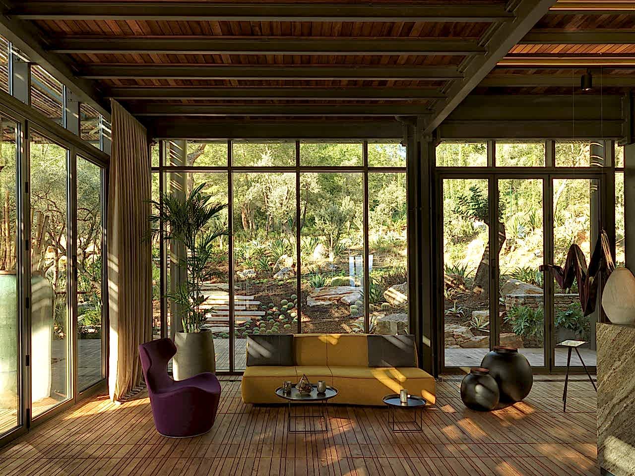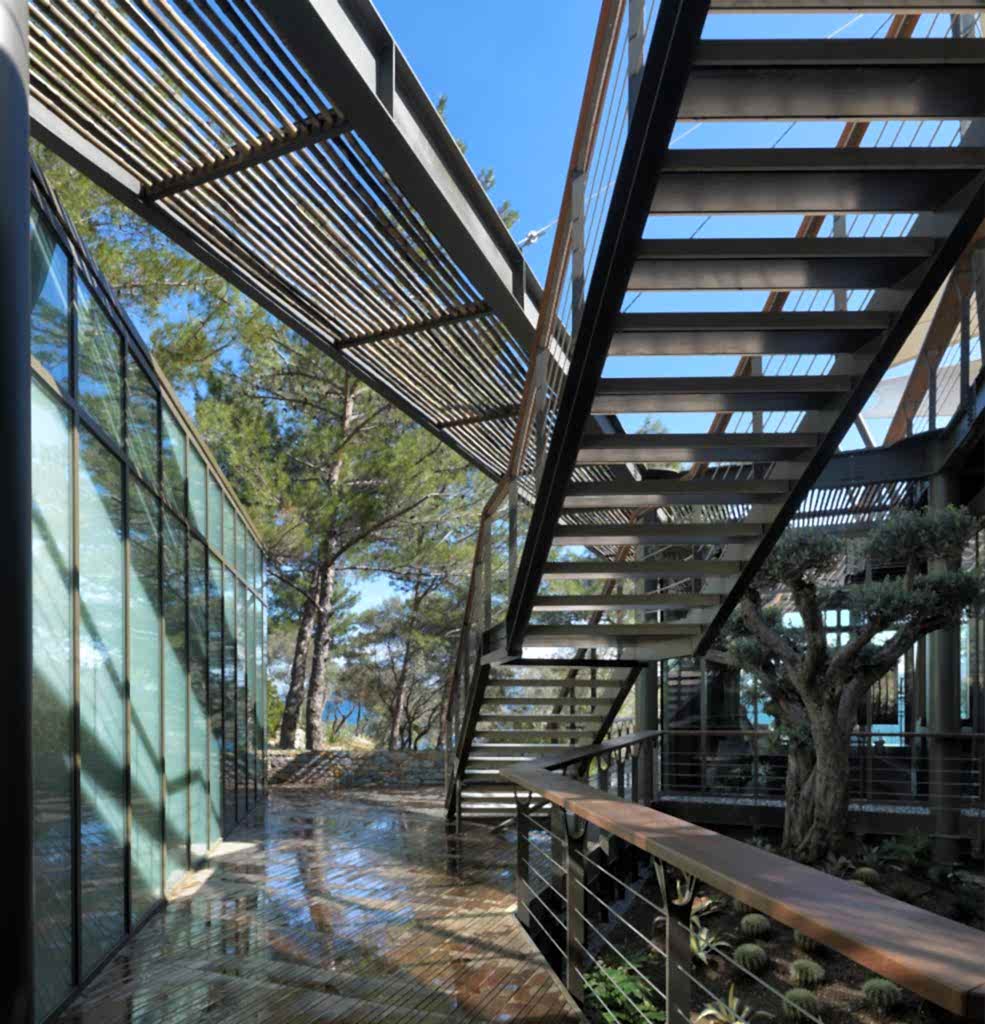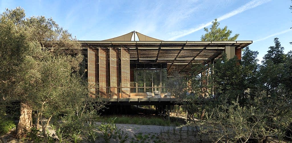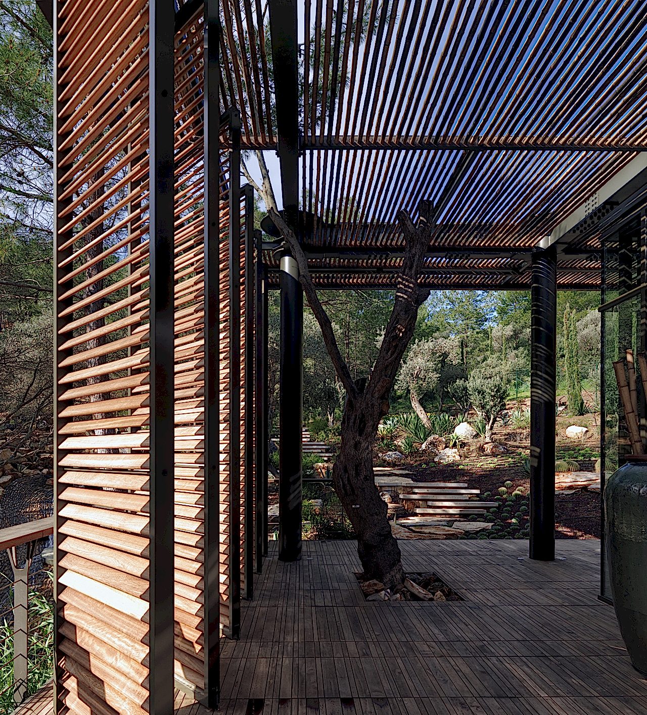 Yapı, mevcut dere yatağının yakınında konumlandırılarak, sıcak iklimin etkilerinin azaltılması amaçlanmıştır. Ziyaretçilerin erişimi için girişte küçük bir otopark alanı organize edilmiş, denizden ulaşım içinse tekne yanaşma iskelesi tasarlanmıştır. Yaya erişimi, mevcut ağaçların arasından geçen bir patika ve su akıntısının üzerinden geçen hafif bir köprüyle sağlanmıştır. Bu ulaşım rotası ziyaretçileri doğrudan doğanın içerisine çeker.