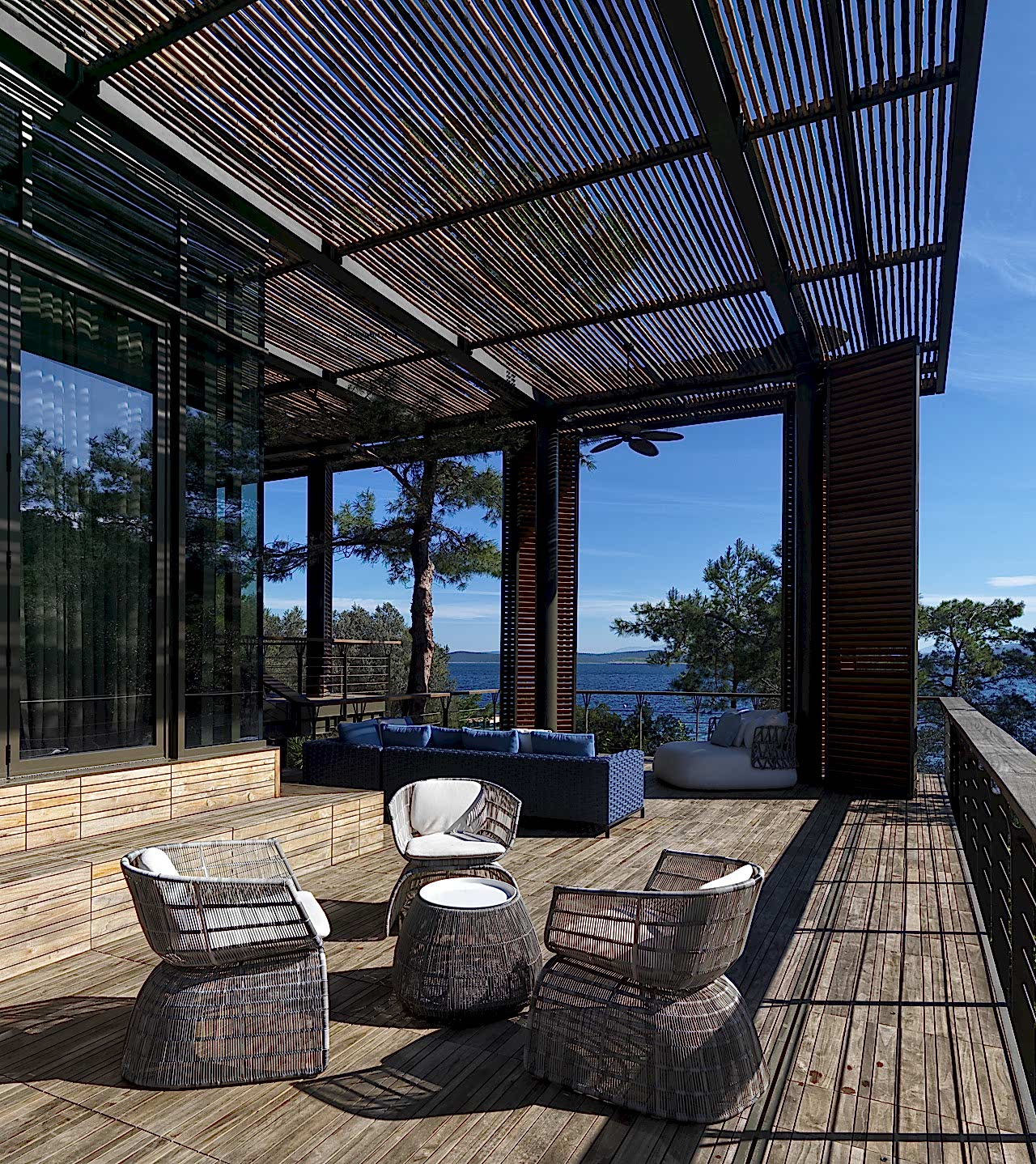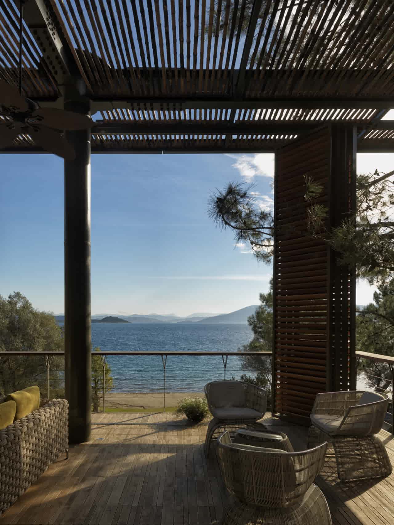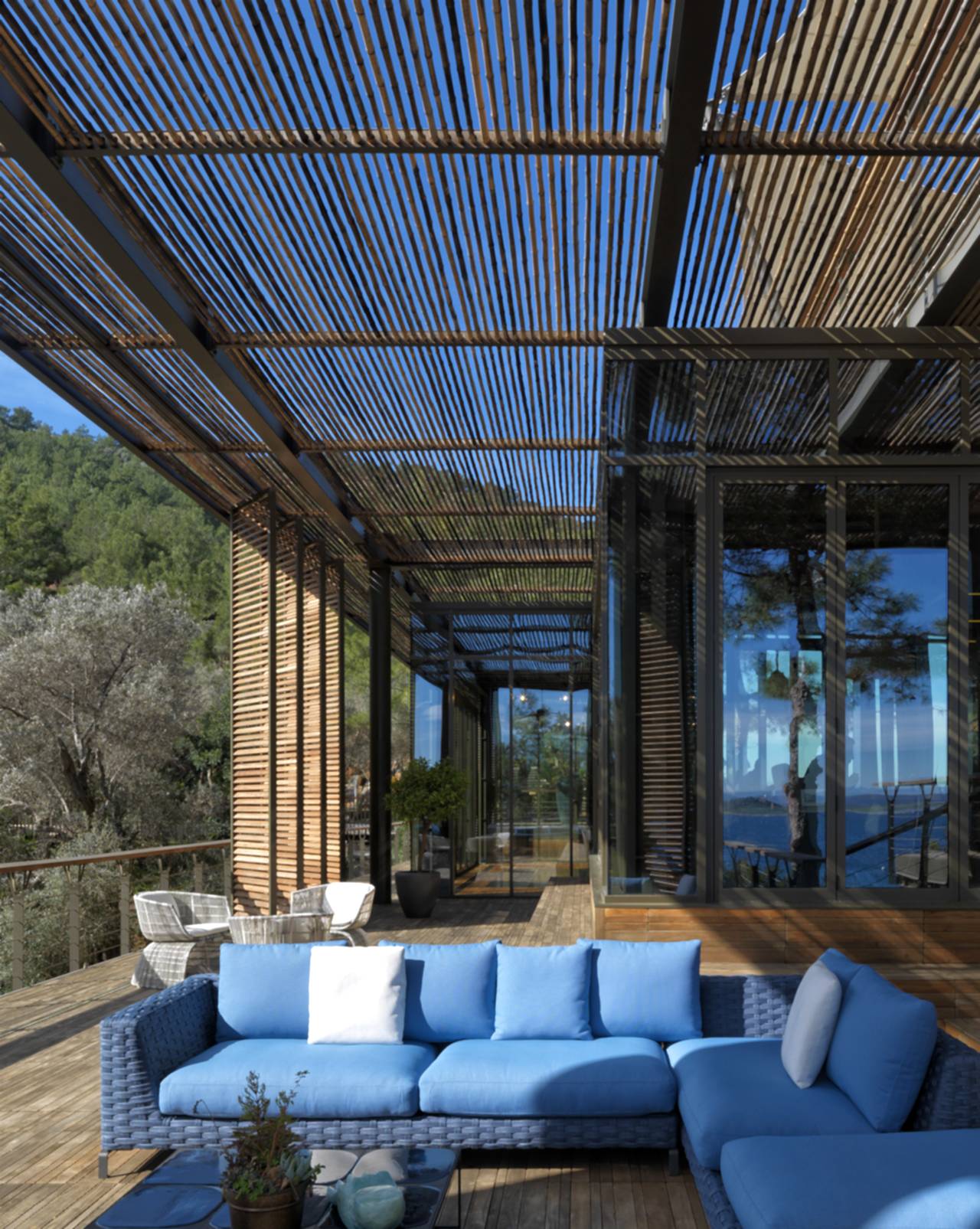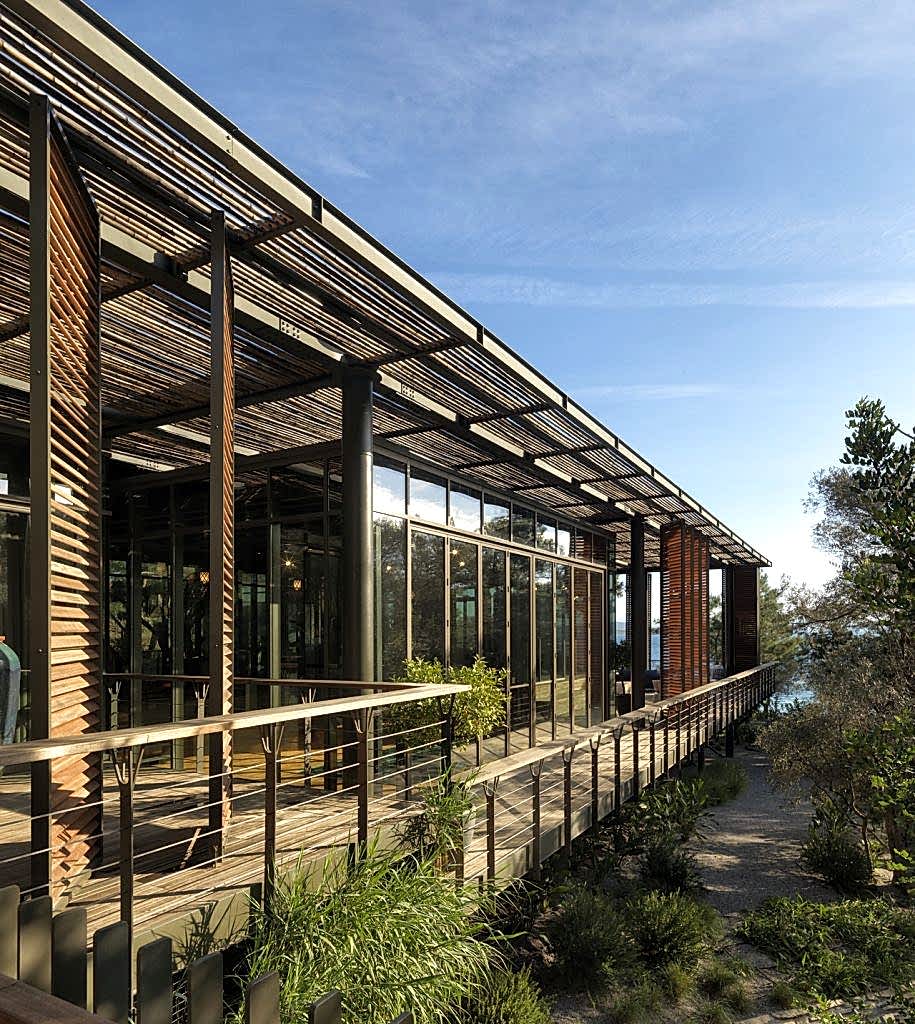 Kuzeyde orman ve doğuda denizle çevrili olan yapı, bulunduğu yerle ve doğayla güçlü ilişkiler kurarak bu bağlamda en iyi örneklerden biri olmayı amaçlar. Bodrum yarımadasında yer alan Demirbükü Evleri’ne hizmet edecek bir sahil restoranı olarak kurgulanan yapı, öncesinde proje iletişim merkezi olarak kullanılabilecek esneklikte tasarlanmış ve hızlı bir şekilde inşa edilirken çevreye olan etkisi minimuma indirgenecek şekilde planlanmıştır. Arazideki eğim, mevcut bitki örtüsü, ağaçların konumu ve program gereklilikleri analiz edilerek yapının en uygun noktaya konumlanması hedeflenmiştir.