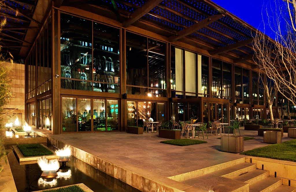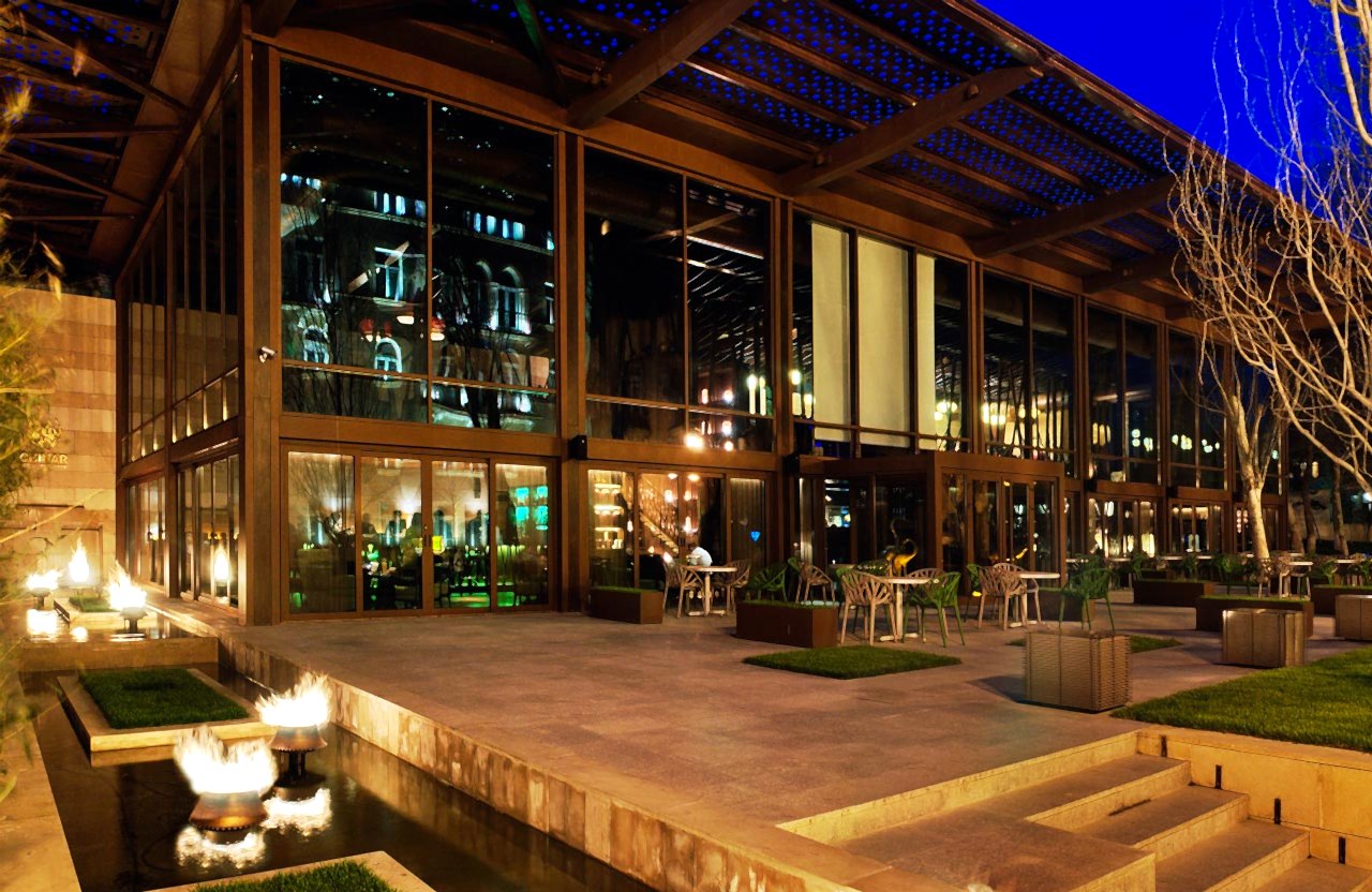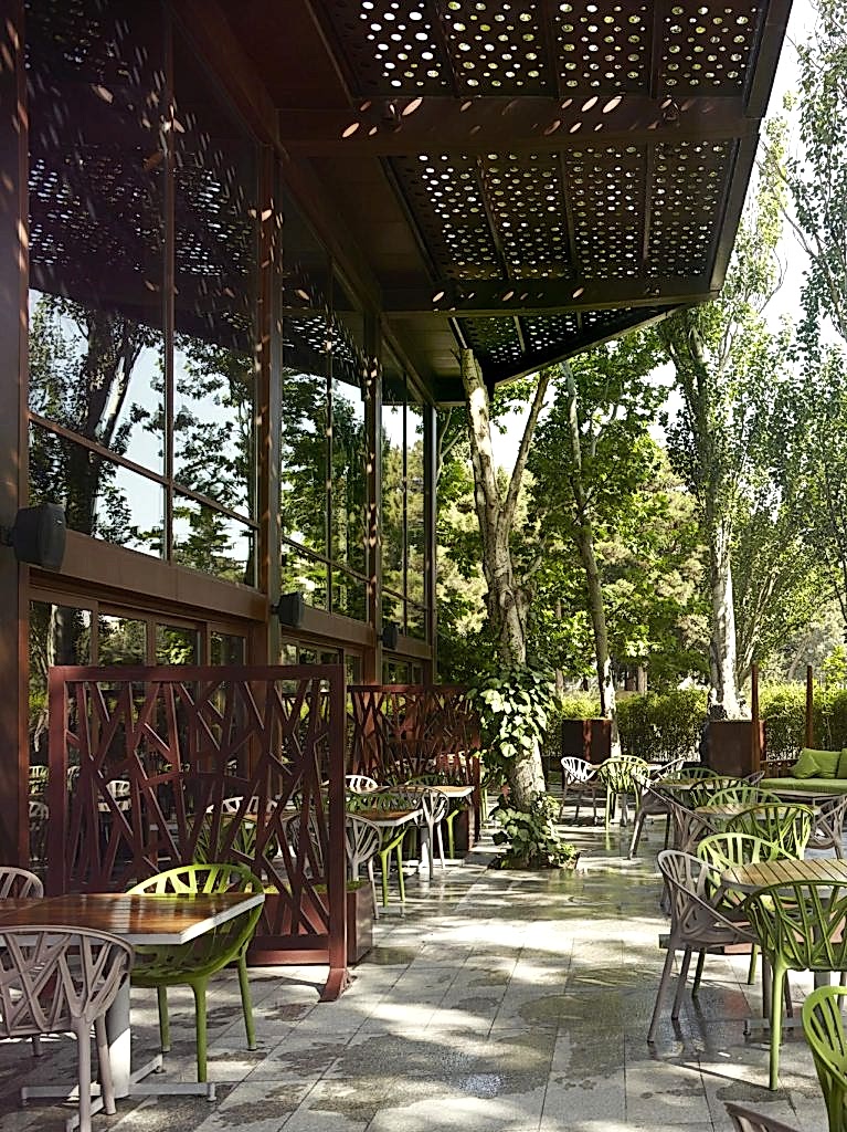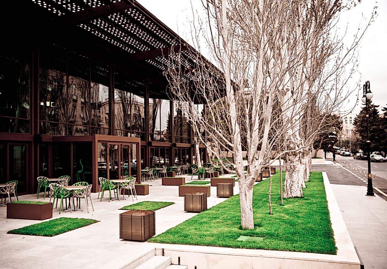 Azerbaycan’ın başkenti Bakü’nün önemli kentsel noktalarından birinde inşa edilen, saydam bir restoran tasarımıdır. Yapı, kent duvarı gibi algılanması arzulanan sert bir kabuğa takılmış çelik çatı ve buna asılı asma kattan oluşur. Boşluklu, ışık geçiren saçak geniş dış mekanları gölgede bırakır, tamamen saydam cephe ise iç mekanı kent mekanına taşır.