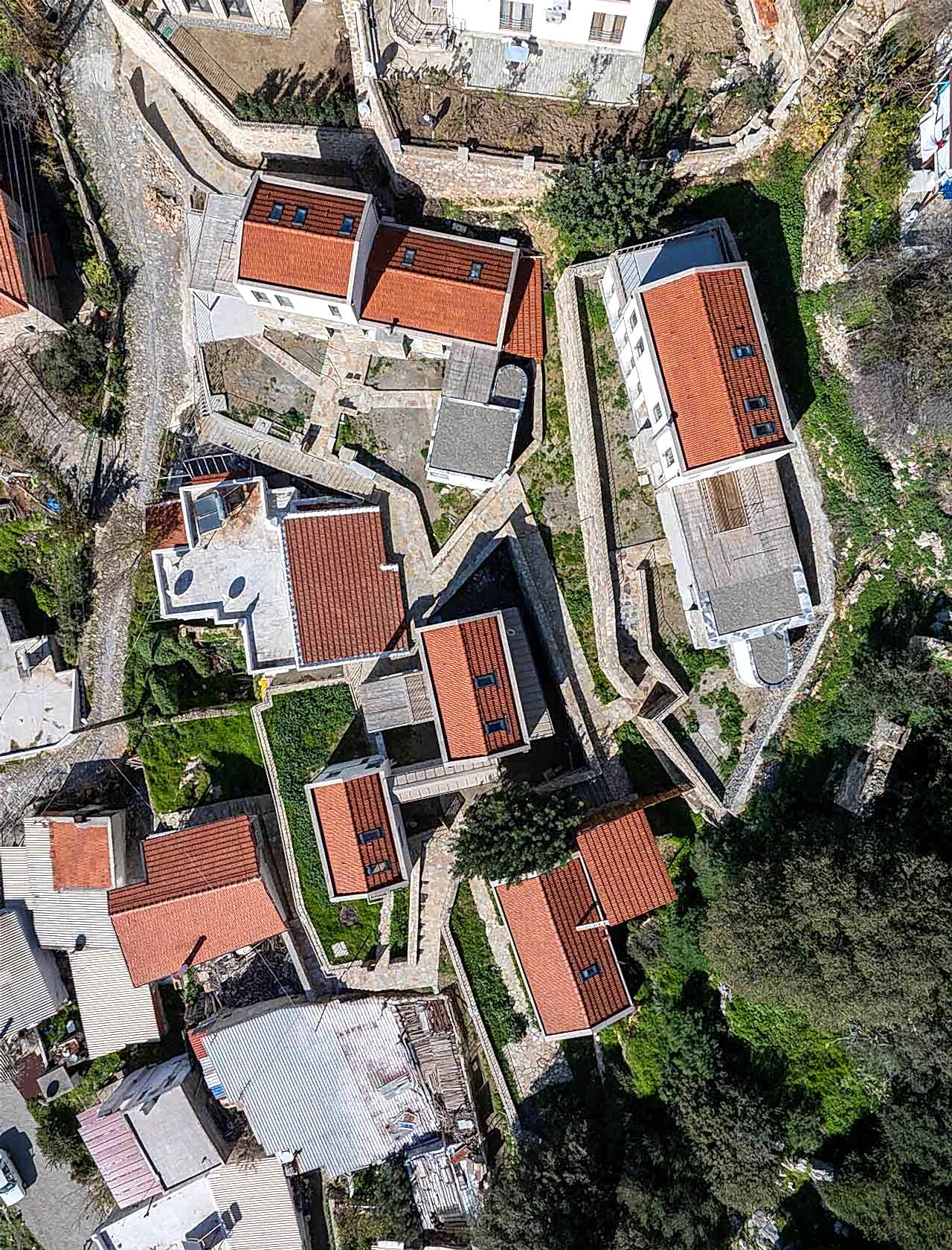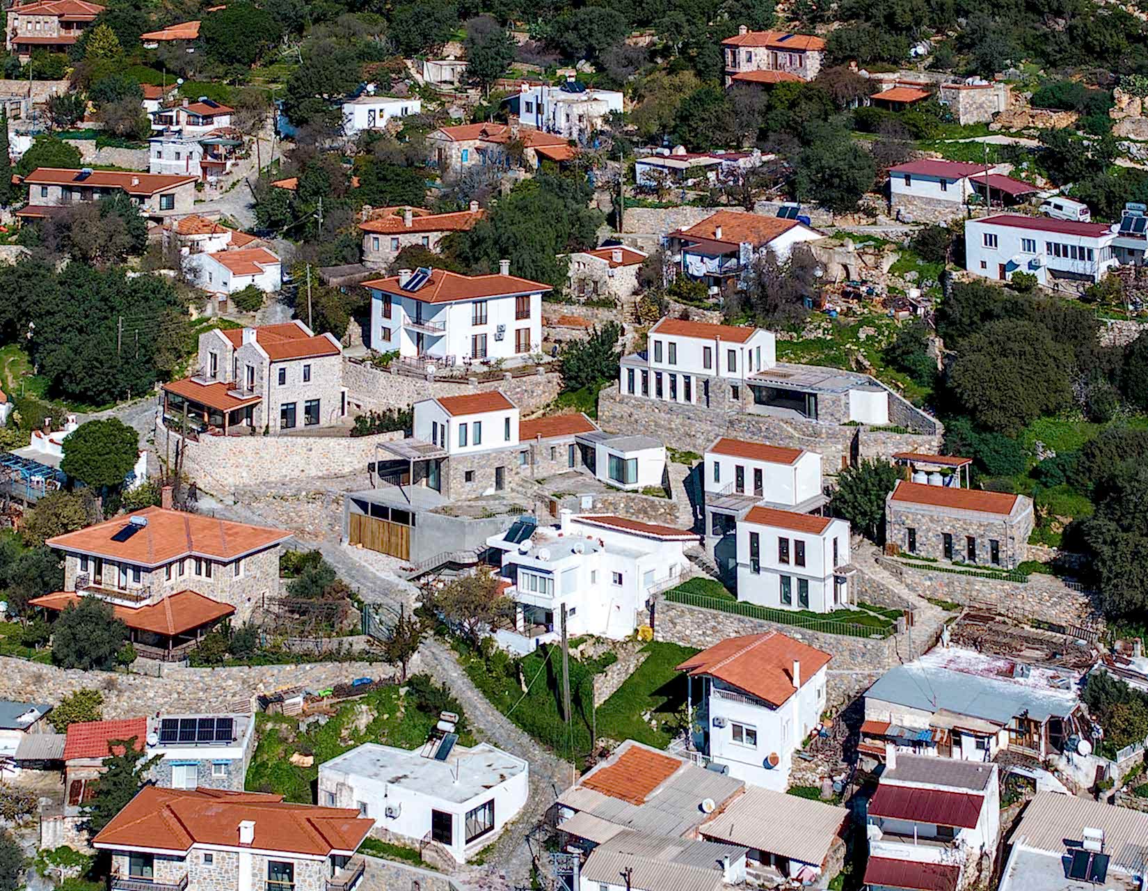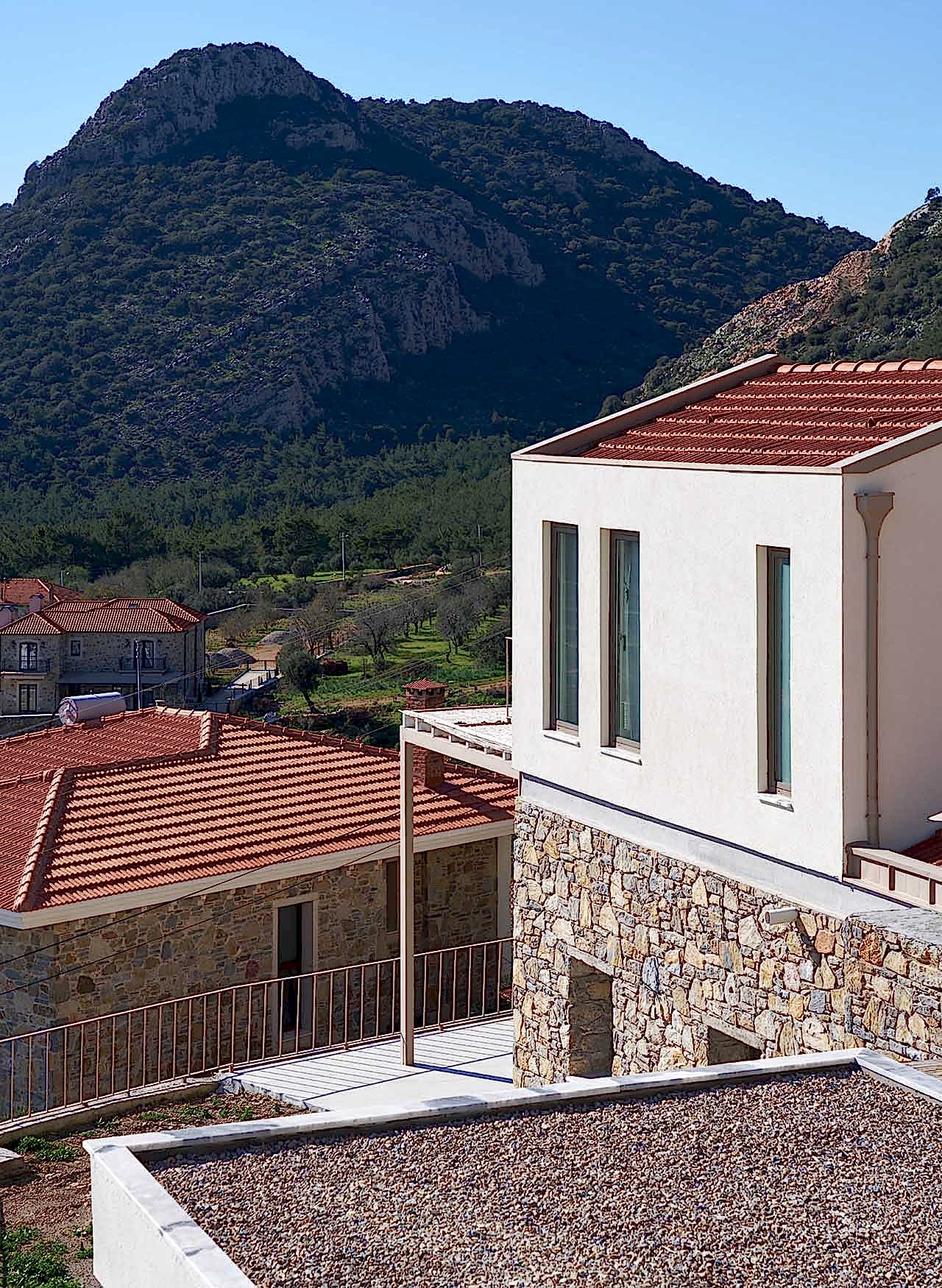 Yerel karakterleri olan bu taş ev kalıntılarının güçlendirilip tasarımın bir parçası olması hedeflenmiştir. Eğimli araziye oturan ve ölçüleri belirsiz olan kalıntıların tam ölçüleri alınıp, ev planları bu ölçülere göre çalışılmaya başlanmıştır. Köy içinde yeni yapılacak evlerin çekme mesafeleri farklı biçimde tanımlanmasına rağmen, raportörlerle konuşularak eski izlere mümkün olduğunca riayet edilmiştir. Yönetmeliklere uygun biçimde inşaa edilen radye temel ve gizli kolon kiriş sistemi, metruk yapı kalıntılarından çıkan ve etrafta bulunan taşlarla yeniden vücut bulmuştur.