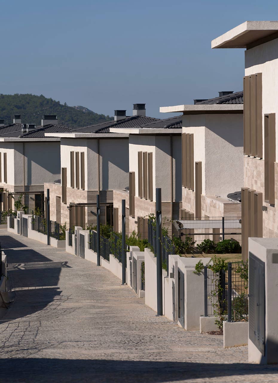İzmir’in Urla ilçesi, Bademler bölgesinde yer alan Folkart Bademler konut projesi yaklaşık 120.000 m2 üzerinde tasarlanmıştır. Pandemi sebebi ile değişen konut ihtiyaçları tasarım sürecinde göz önünde bulundurulmuş, izolasyon, çalışma, ayrışma, beraber yaşama gibi değişen kullanıcı istekleri, tasarımda belirleyici rol almıştır. Şehirden kaçış ile birlikte, bireylerin şehir içerisinde gerçekleştireceği sosyal faaliyetlerin tasarım içerisinde yer alması hedeflenmiş, vaziyet planı tasarımı sosyal ve psikolojik yönleri ile de ele alınmıştır. Arsanın içerisinde ortak kullanım alanları oluşturulmuş, çevrede yer alan parkların ana vaziyet planı kurgusuna dahil edilmesi planlanmıştır.