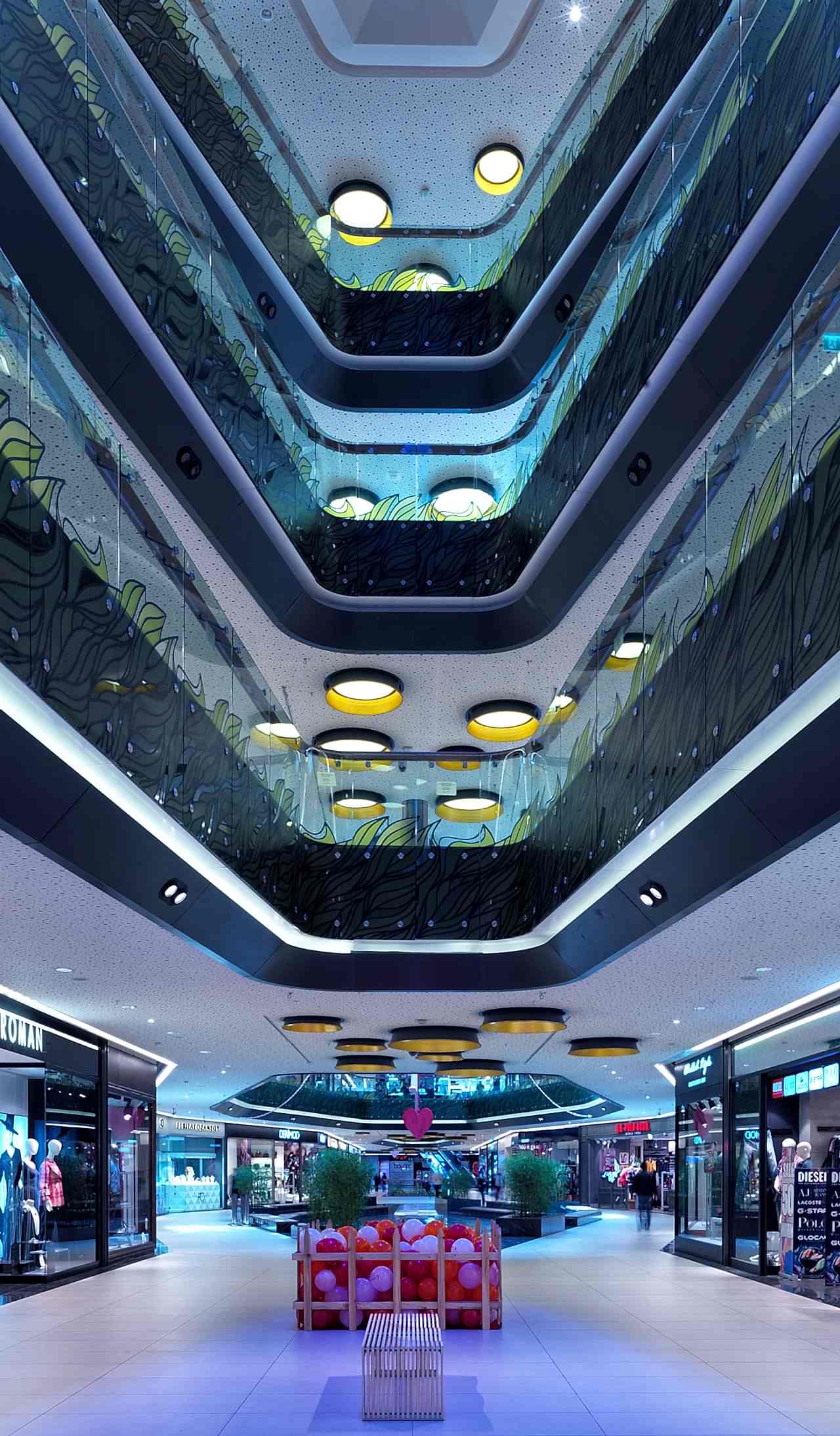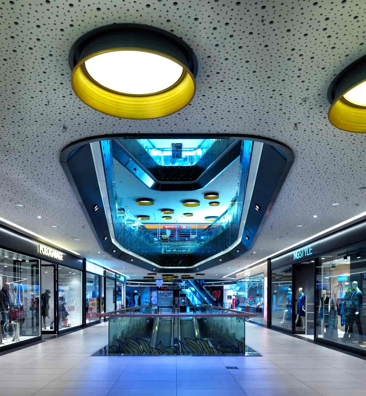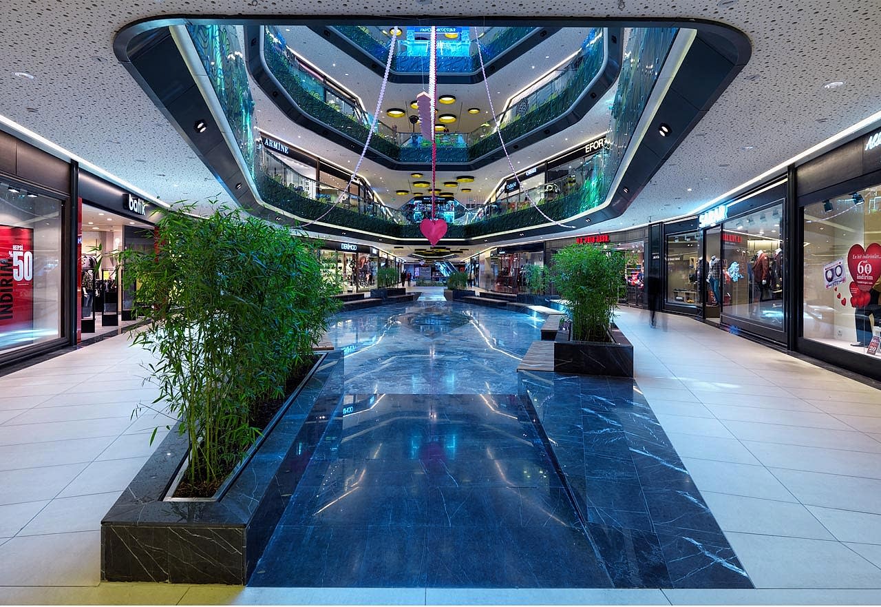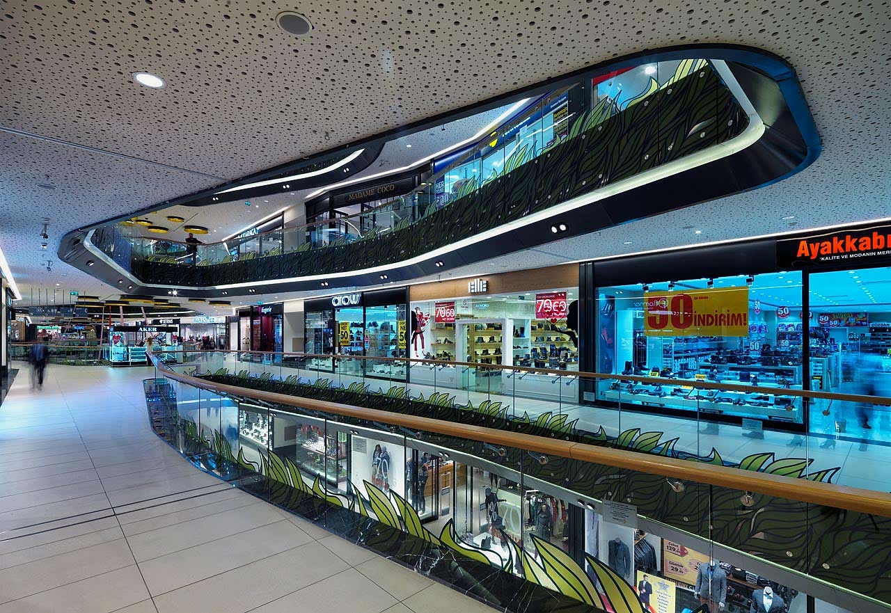 Yapılan strüktürel tasarımla, yaklaşık 100 metrelik ana boşluğun kesintisiz algılanması, hiç kolon kullanılmayarak sağlanmıştır. Strüktürü zorlayan ve 7-8 metrelik iç konsollar yapılmasını gerektiren bu çalışmada, bütün kolon akslarının dükkan vitrin hattının gerisinde kalacağı bir tasarım uygulanmıştır. Bu sayede, AVM içinde dolaşan ziyaretçi için tüm katlarda hem aşağıya hem de yukarıya doğru maksimum bir görsel algılanma sağlanmıştır. Ortada yaratılan galeri boşlukları ve ara boşluklar dışında, yatay yapıda da çok kuvvetli bir optik ilişki ve sınırsız bir derinlik yaratılmıştır.