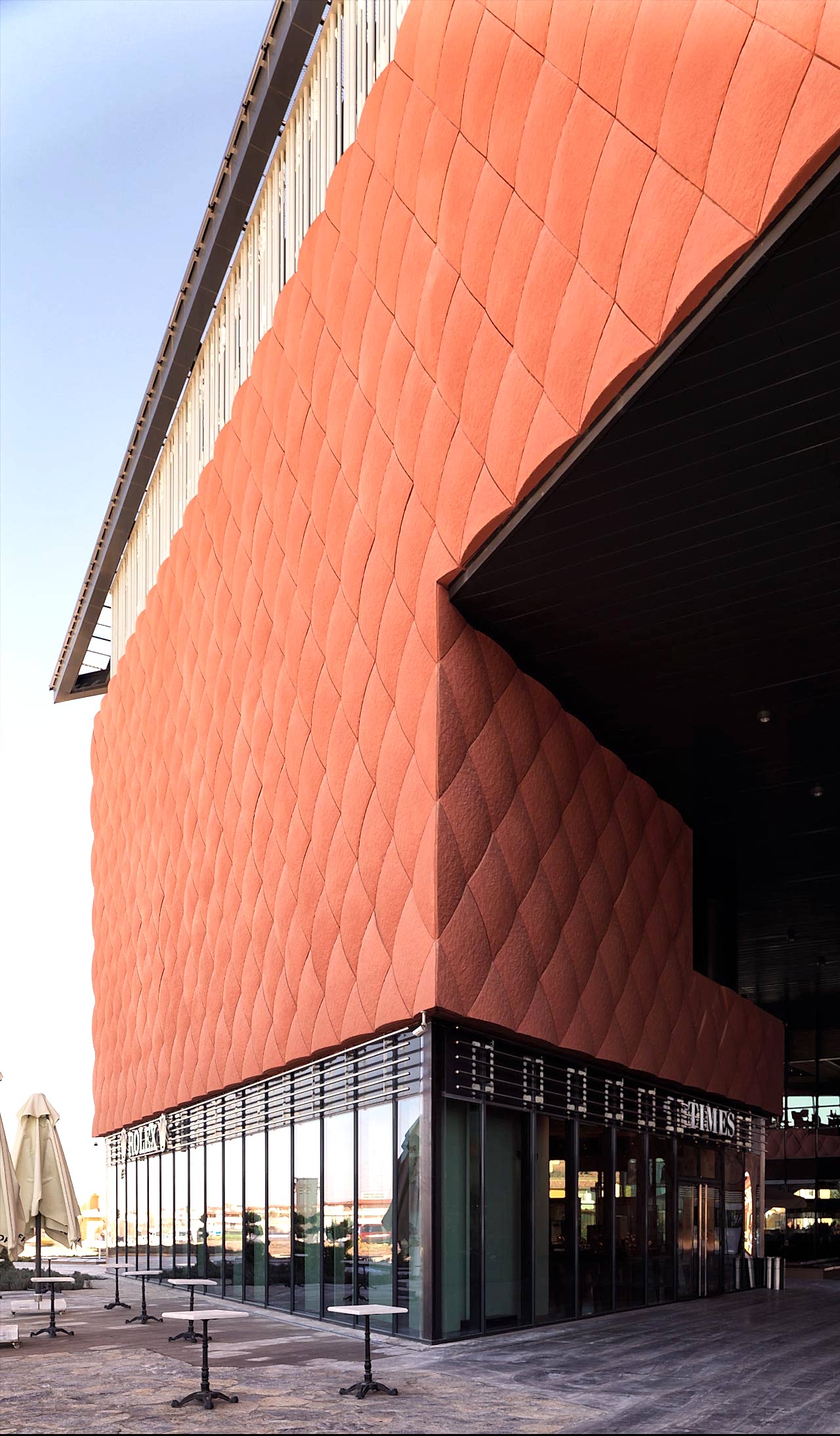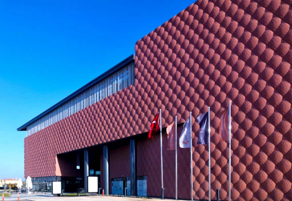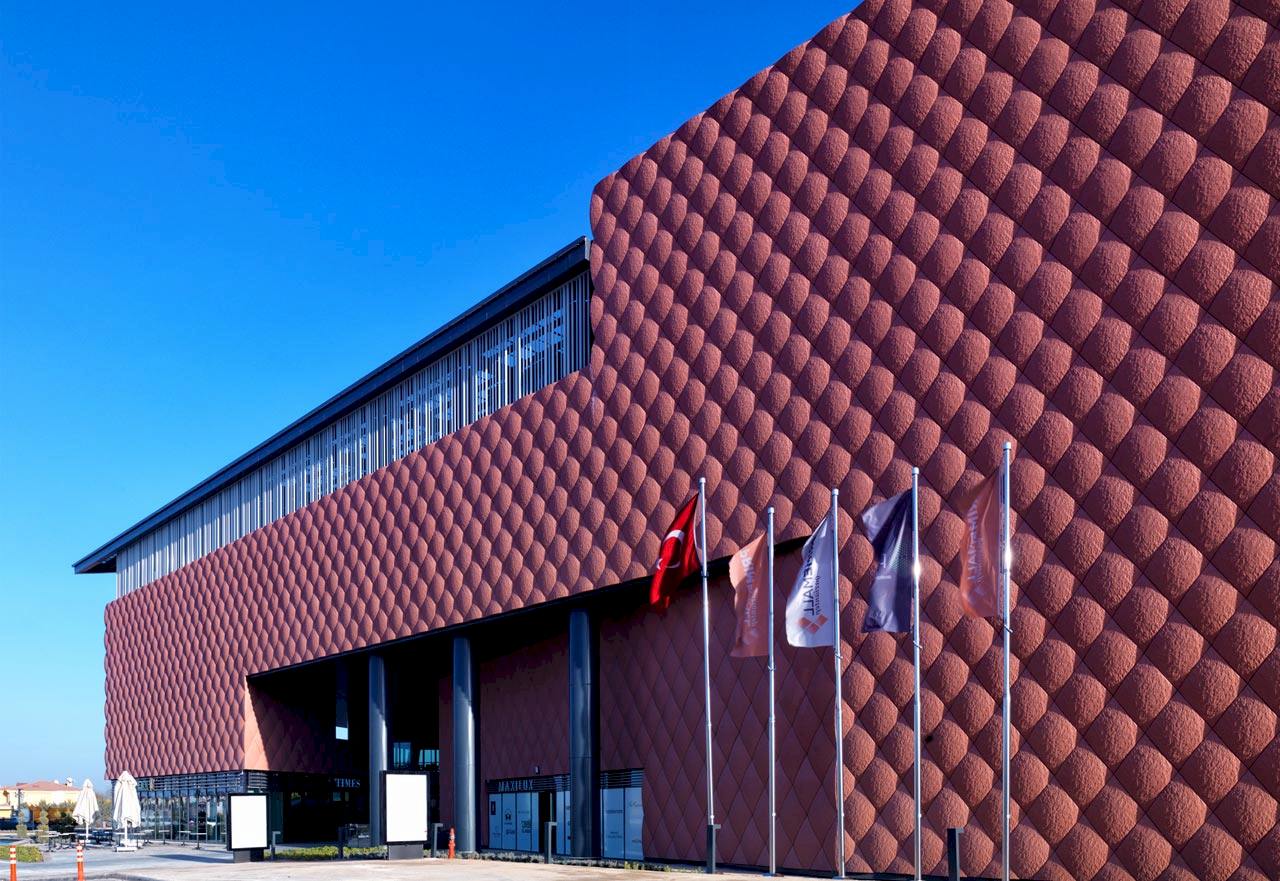 Binalar dışa kapalı olduğu için oluşan masif yapı, plastik bir etki ile kırılmıştır. Projenin bulunduğu coğrafyanın etkileri, binanın kabuğunun şekillenmesinde son derece etkili olmuştur. Binanın girişlerinde yaratılan falezlerde Mezopotamya’yı yansıtan renkler ve formlar kullanılmıştır. Doku olarak da, Gaziantep’in çok aşina olduğu “baklava” şekli belli belirsiz bir doku olarak binanın dış cephesine taşınmıştır.