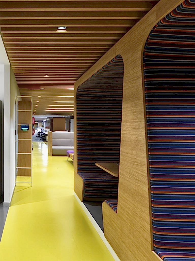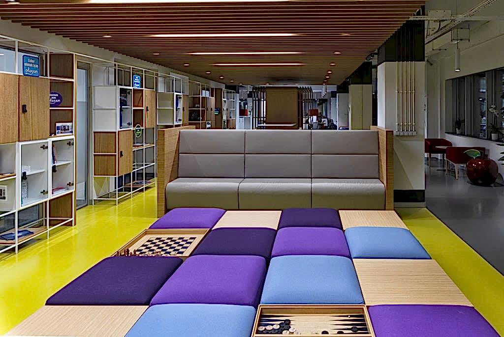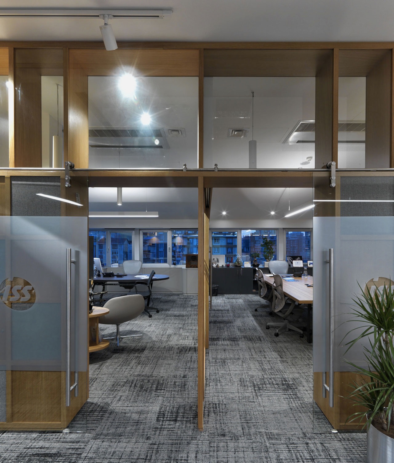 ISS Genel Müdürlük ofisi projesinde ofisin bünyesinde barındırdığı farklı çalışma tipleri bir tasarım kriteri olarak değerlendirmeye alınmıştır. Şirket çalışanlarının bir kısmı ofisi tam zamanlı kullanırken, bir kısmı da çoğunlukla sahada müşteri ile birebir ilişki içerisinde çalışmaktadır. Eski ofis tipinde sabit ve gezgin tüm çalışanlara ait çalışma istasyonları bulunmakta ancak bu istasyonların birçoğu boş durmakta ve çok az kullanılmaktaydı. Yeni ofis tasarlanırken mobil çalışanlar için sosyal bir aks ve bu aksta kullanılabilecek ortak kullanımlı açık çalışma mekanları oluşturulmuştur. Böylece bu çalışma mekanları aynı zamanda buluşma noktası ve toplantı alanı olarak kullanılabilmektedir. Gezgin çalışma tipine sahip çalışanların kişisel eşyalarını depolamaları ve ofise geldiklerinde kullanmalarını kolaylaştırmak için çokça kilitli dolap modülü öngörülmüştür. Yönetici alanı da yeni çalışma biçimine uygun olarak tamamen kayar kapılarla tekrar düzenlenmiştir. Yönetici odaları kişilere tahsis edilmiş alanlar olmaktan çıkartılmış, bu alanların boş olduğunda toplantı odası olarak değerlendirilmesi sağlanmıştır.