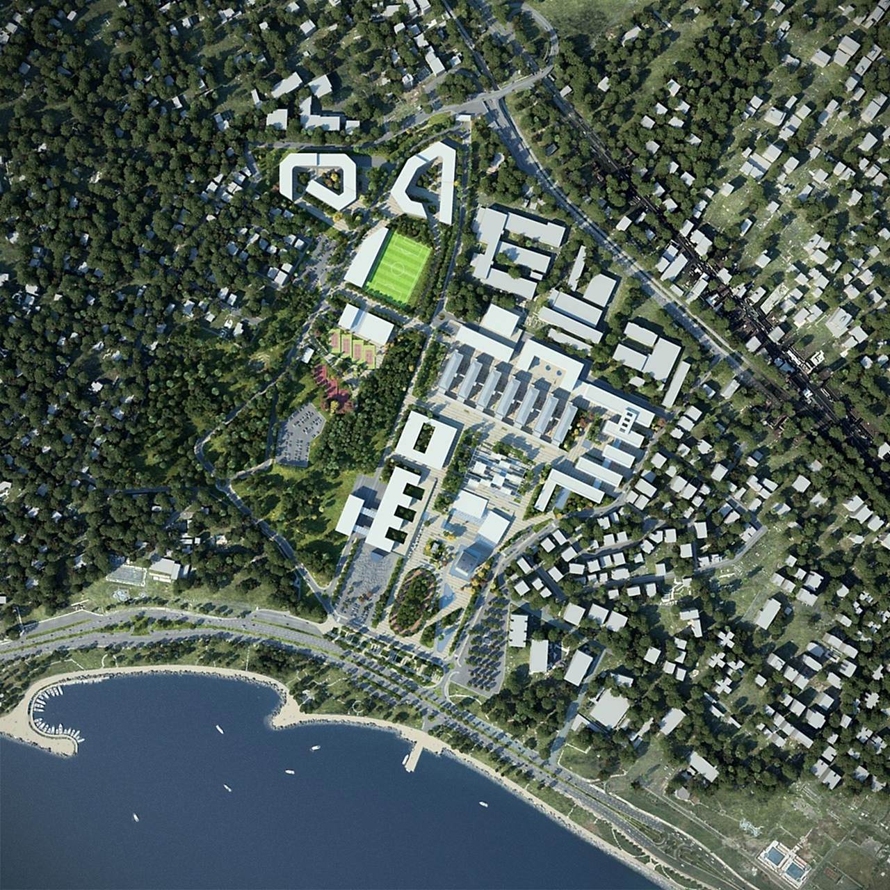 Master Plan ölçeğinde ele alınan parselde; sosyal alanlar, eğitim alanları, yurt binaları ve spor binaları oluşan bir program çalışılmıştır.