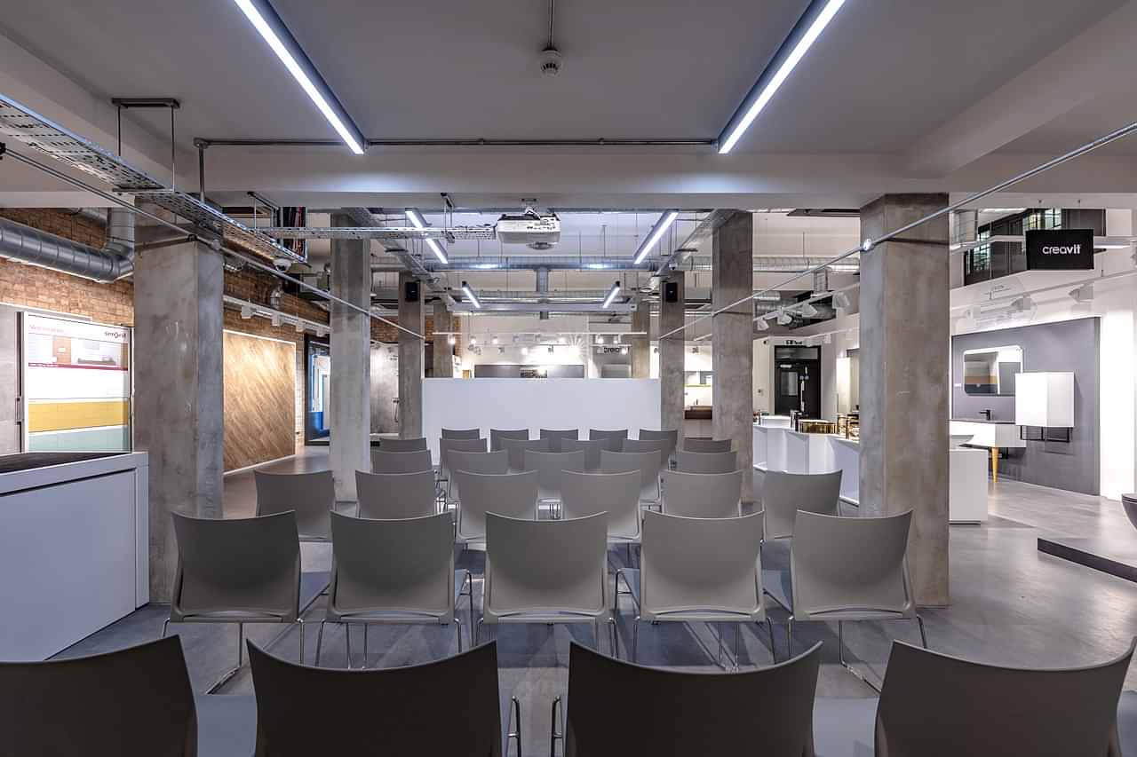 6 katı bulunan mevcut bina’nın 5 katı merkeze aittir ve bünyesinde farkı işlevleri bulundurmaktadır. Bodrum kat, giriş kat ve 1.kat malzeme ve ürünler için sergileme alanı sunmaktadır. Bu işlev 3 kata yayılacak şekilde, 11 adet firma’nın her birine ayrı alanlar ayırılmış ve bu alanlara akışkan bir dolaşım sağlanacak şekilde firmaların ürünlerini sergileyebilecekleri sabit ve harketli yüzeyler oluşturulmuştur. Binanın 3. katında ise farklı firmalara ait 7 adet ofis ve ortak çalışma/toplantı/dinlenme alanları bulunmaktadır. Ayrıca, binanın en üst katı, Türkiye İhracatçılar Merkezi’nin İngiltere merkezidir. Bu katta, yönetici birimi, toplantı odaları ve B2B toplantılara ve etkinliklere imkan sağlayan bir ortak alan bulunmaktadır.