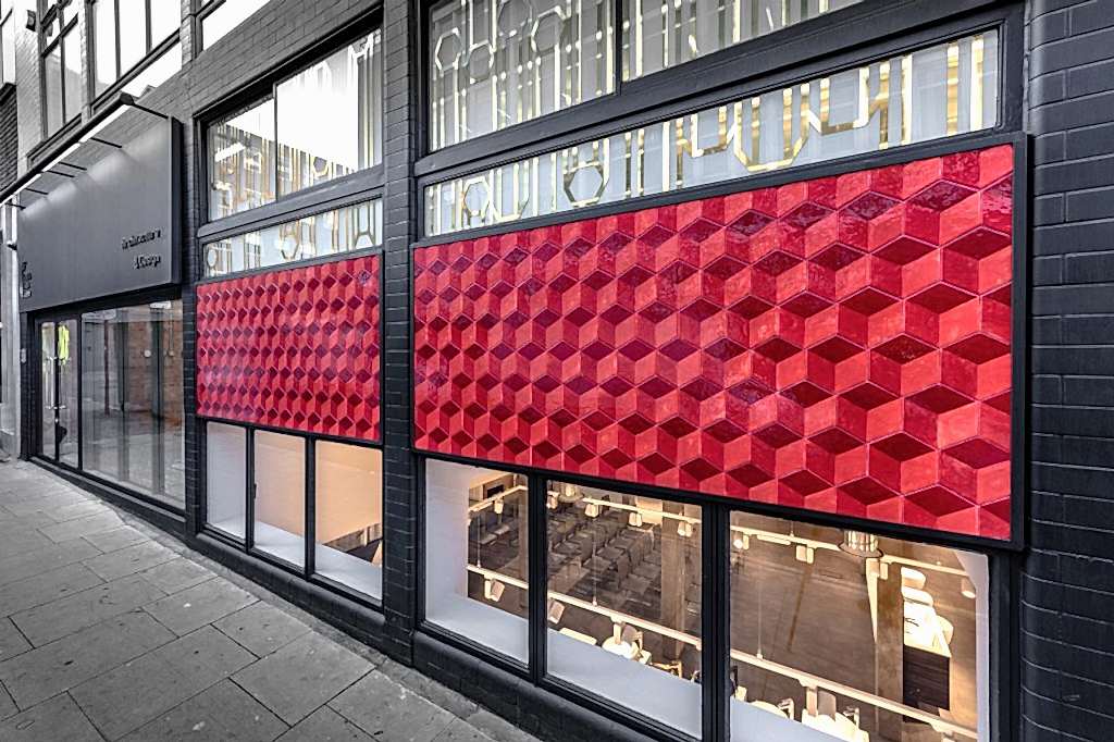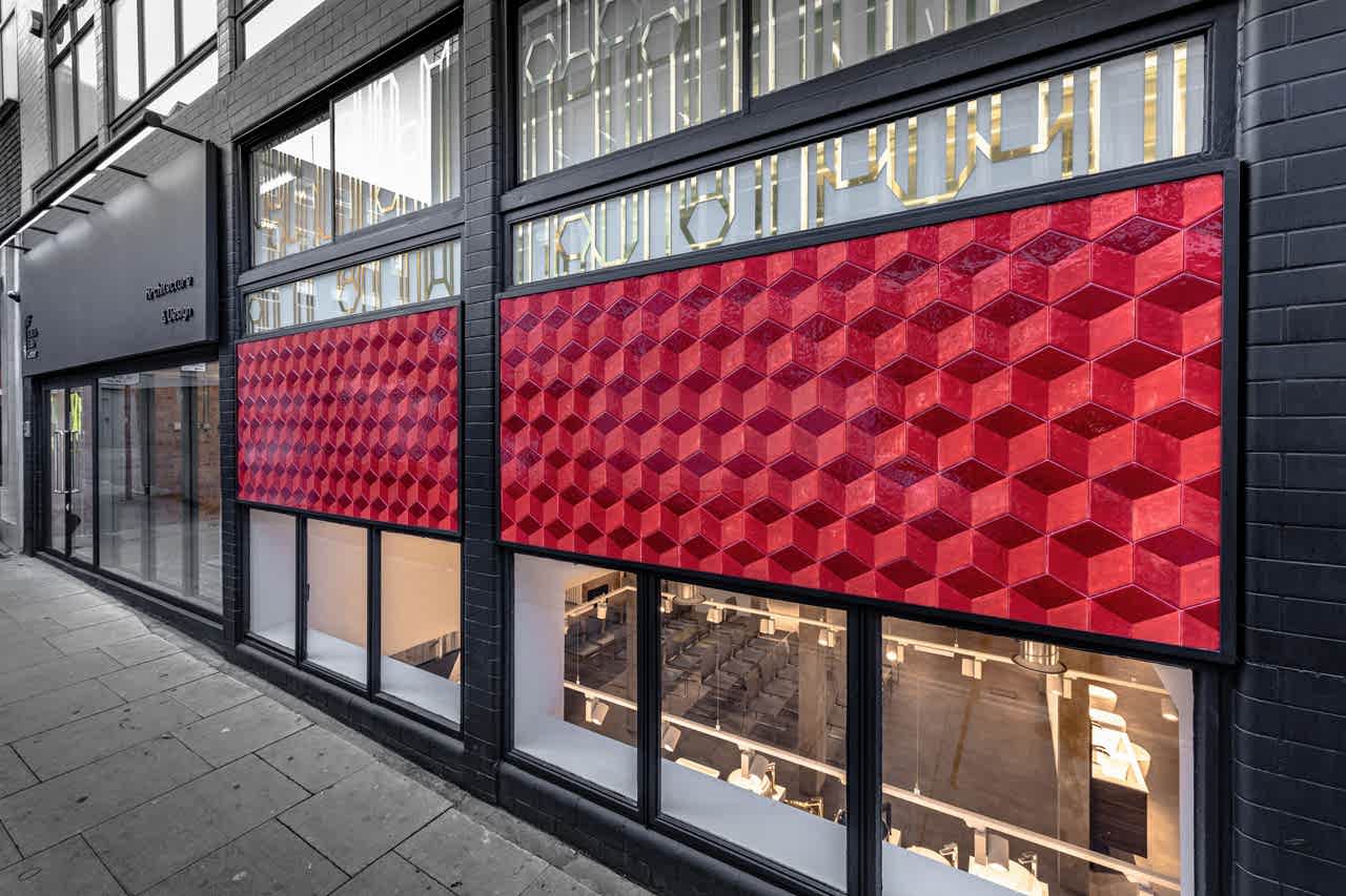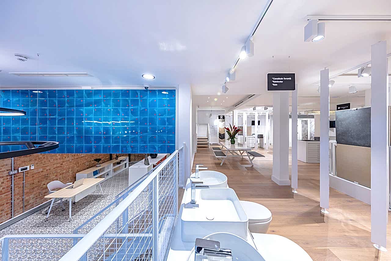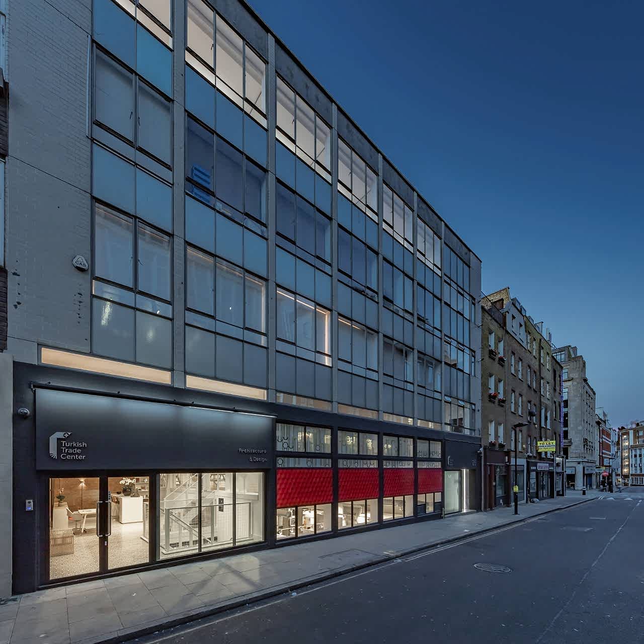 Bina bulunduğu sokakta, Türkiye tasarım ve geleneksel tasarım kültürünü Londra sokaklarına taşımak amacıyla, sokak kotunda, cephe’de ve giriş karşılama alanına yapılan küçük müdahaleler ile Türkiye’de üretilen özgün desenli çini ve seramikler ile, ilgi çekici hale getirilmiş, buna karşılık, bina iç mekanı minimum mimari müdahale ile bünyesinde bulundurduğu firmaların ürünleri ön plana çıkaracak bir tuval olarak düşünülmüştür. Cephede bulunan 16. yüzyıl teknikleri kullanılarak el ile üretilen Edirne kırmızısı çiniler(Rouge d’Andrinople), 18.yy’ın başlarında yaygın olarak kullanılan Türkiye’ye özgü, üretilmesi hayli zor olan güçlü bir kırmızı kumaş rengini, tarihini, Avrupa ve İngiltere’deki üretim denemelerini, formüllerini ve rengin endüstriyel dönüşümünü temsil etmektedir. Binanın giriş karşılama alanında Türk tasarımcılar Bülent Erkmen ve Canan Tolon’a ait seramik ve çiniler ön plana çıkmaktadır.