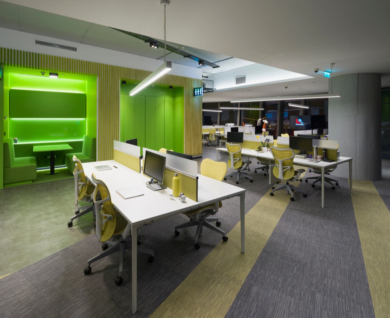 Firmanın hızlı büyüme potansiyeli göz önünde bulundurularak fonksiyonlar ve altyapı farklı kullanımlara uygun olarak planlanmış, mobilyalar buna göre detaylandırılmıştır.