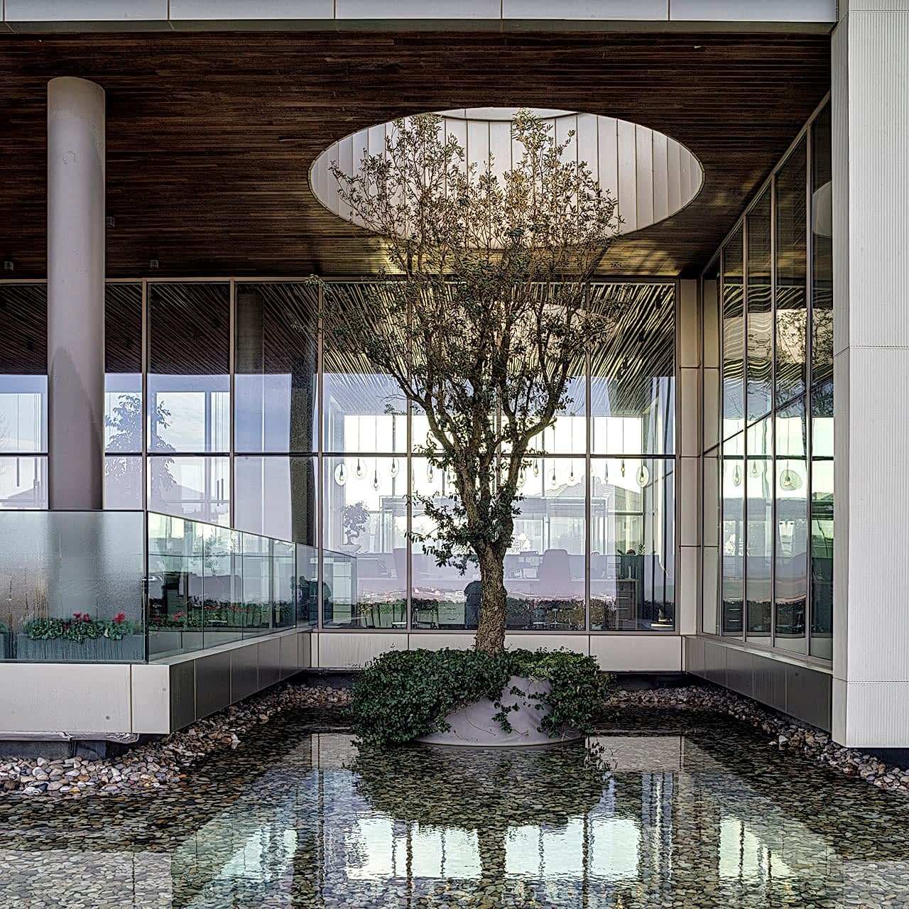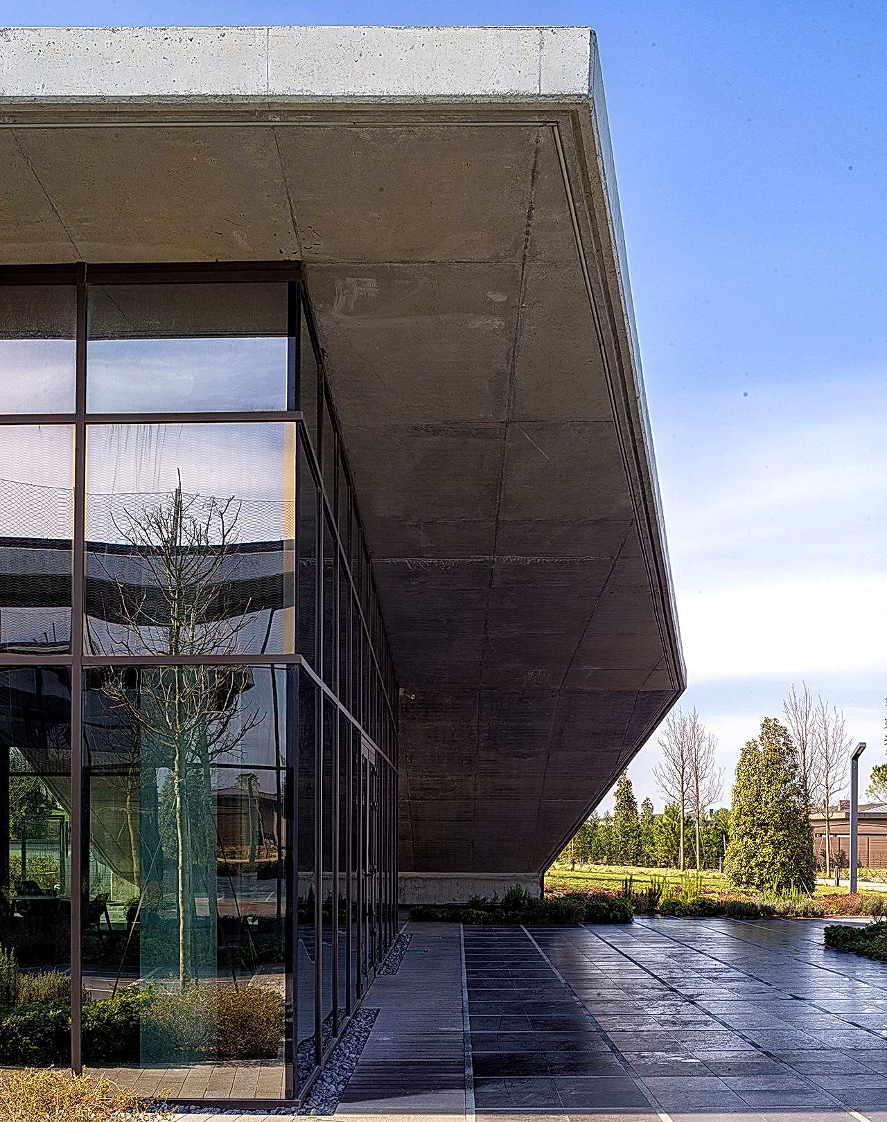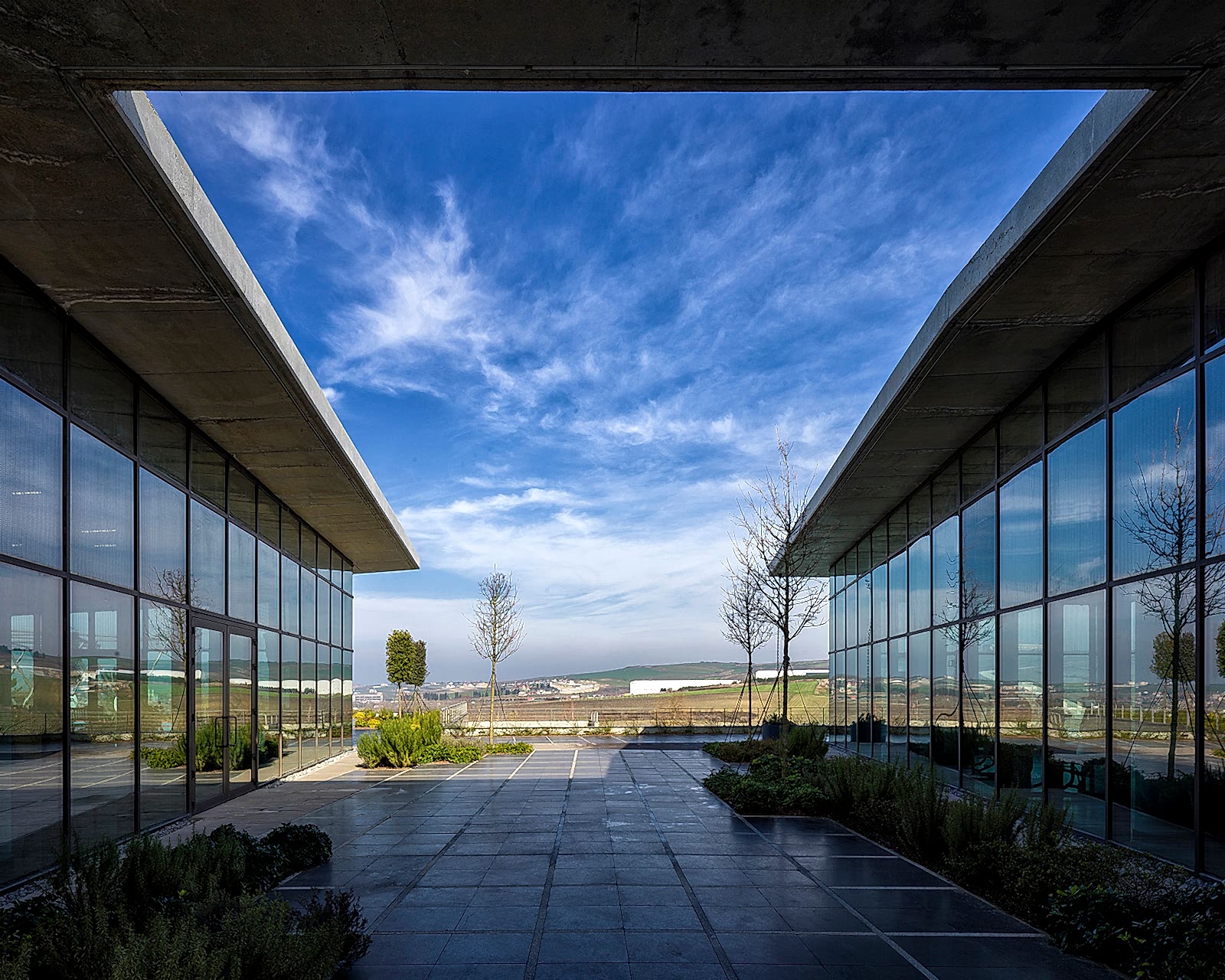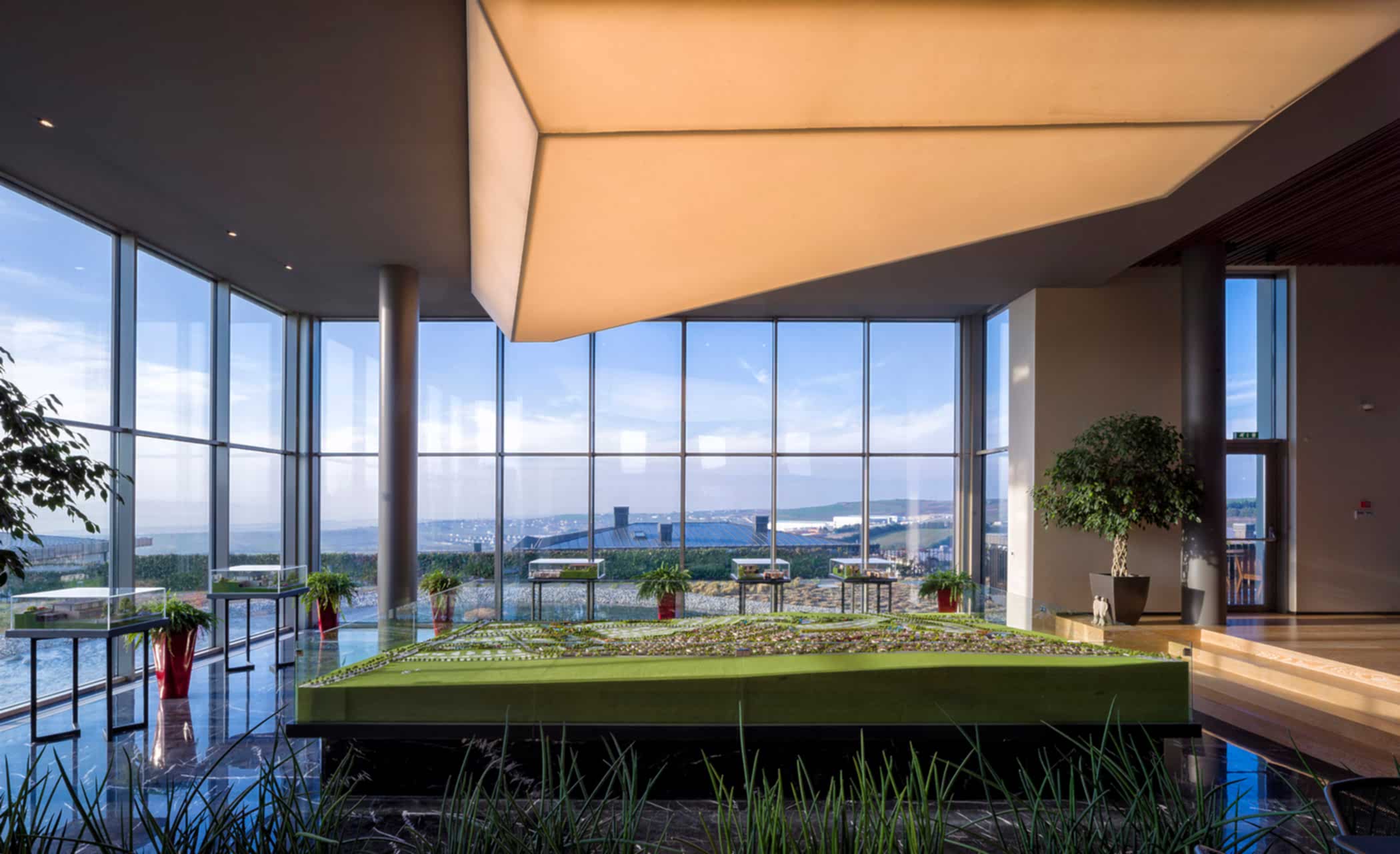 Sosyal tesis binasının giriş aksına paralel uzanan yol, binanın yeşil çatısı ile kesişmektedir. Çatı hem bir seyir terası olarak düşünülmüş, hem de üst kotlardan devam eden manzara ve yeşil alan algısının kesintisiz olması hedeflenmiştir.