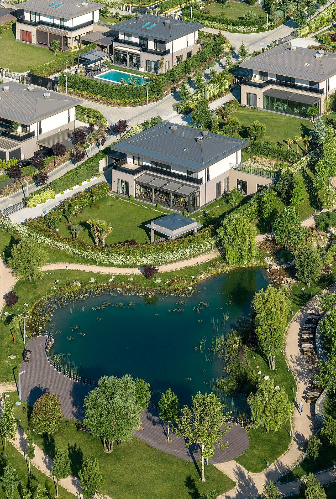 Master plan aşamasında verilen kararlardan biri, çevredeki projelerden farklı olarak villa bireysel bahçelerinin bakılabilir ölçekte tutulması ve ortak hayatın teşvik edilmesi yönündedir. 159 adet villa ve bir adet ticari alandan oluşan birimler ortalamada 1000’er m²’lik parsellere ayrılmış, bu sayede yaklaşık 75.000 m²’lik bir kent parkı oluşturulmuştur.