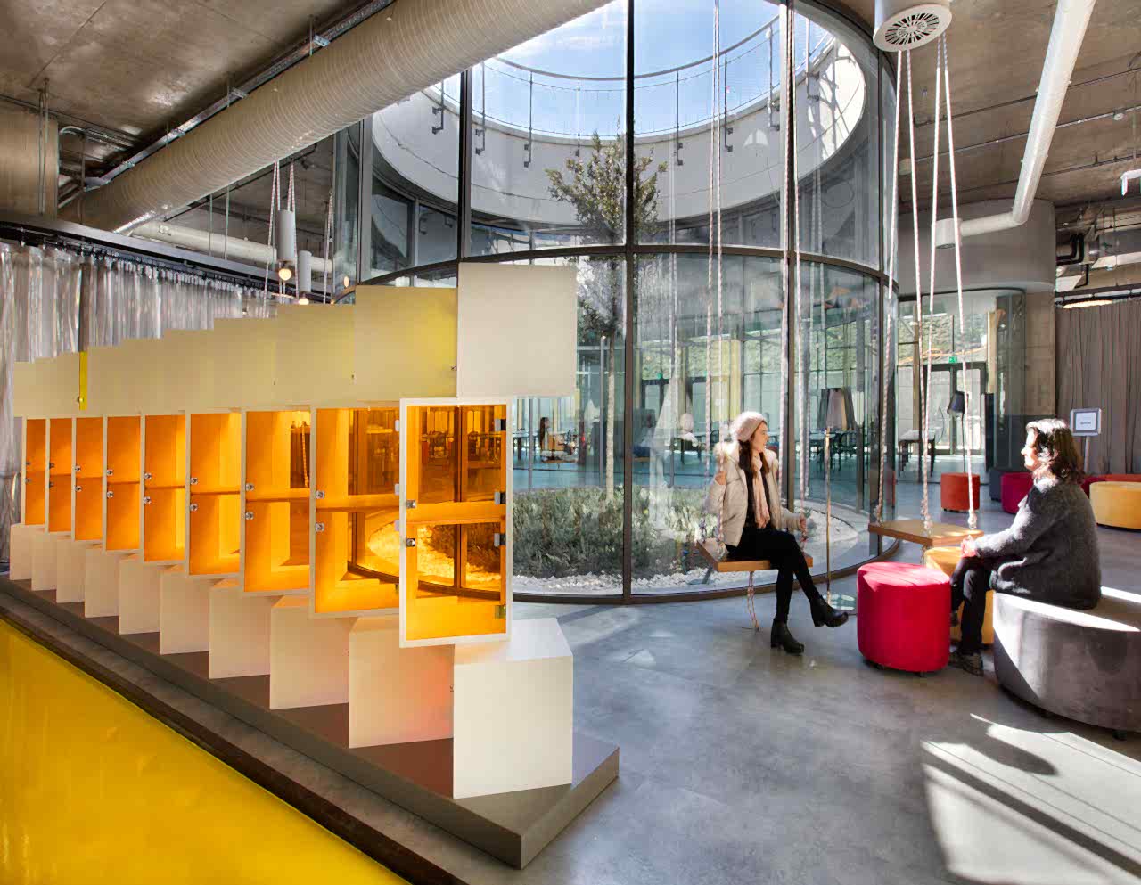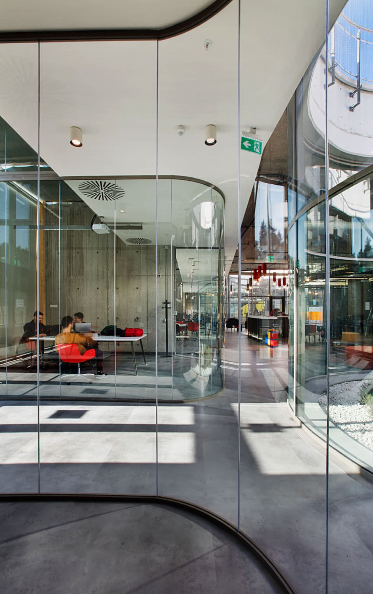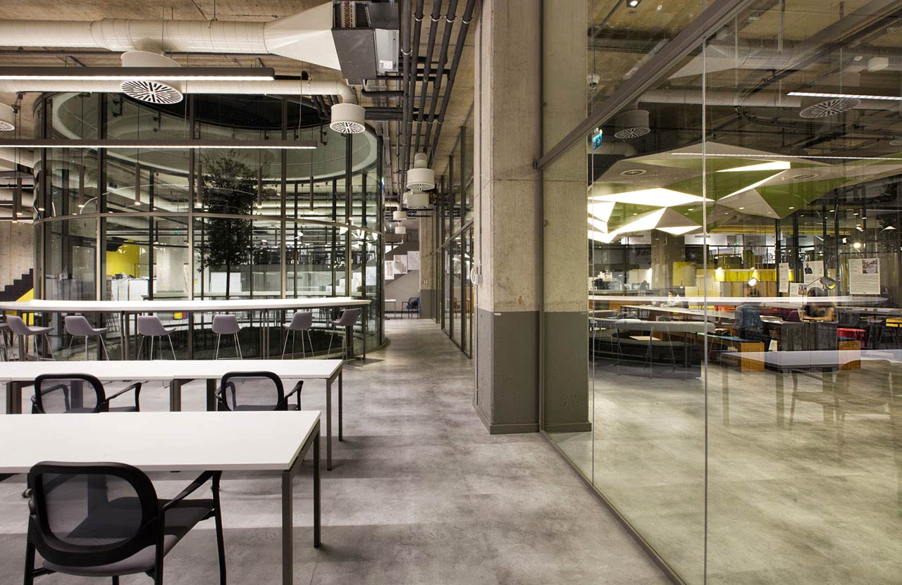 Bu mekan etkileşim ve grup odaklı araştırmalara ev sahipliği yapan bir “sosyal bina” olarak tasarlanmıştır. Bu tasarımın gerekliliklerinden biri de kapalı ve açık laboratuvarların dengesinin kurulması ve esnek mekan ihtiyacının karşılanmasıdır.