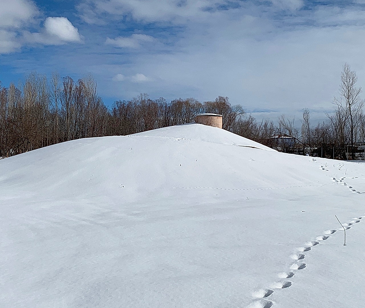 Temellerin atılmasının ardından kuzeybatıdan gelen güçlü rüzgarın yavaşlatılıp kontrol altına alınabilmesi için arazide korunak duvarlarının etrafnda eğrisel bir doğrultuda yükselip sönümlenen toprak dolgu ile rüzgar engeli oluşturulmuştur. Taş örgü istinat duvarı arkasına toprak yığılmış ve yığının 1 yıl oturması ve yeşillenmesi beklenmiştir.