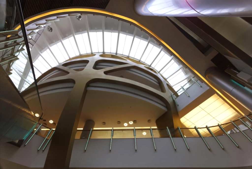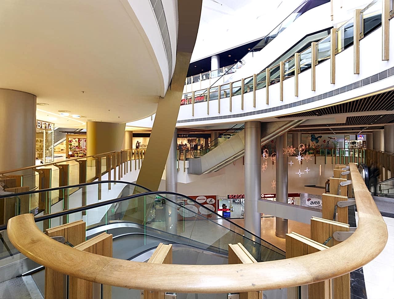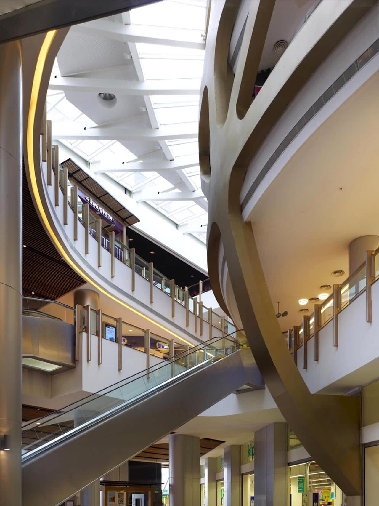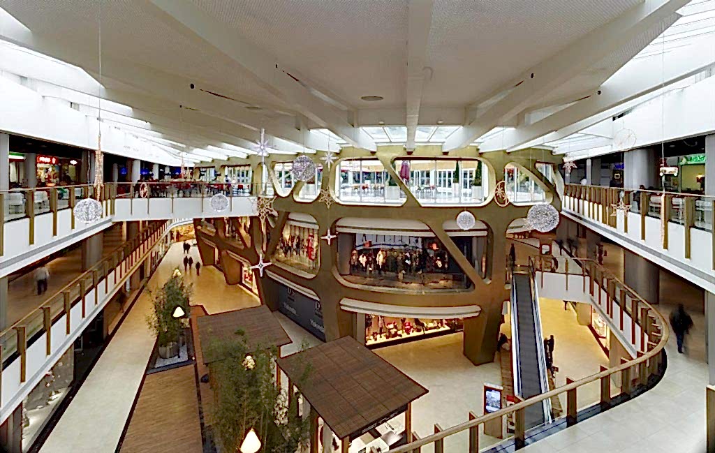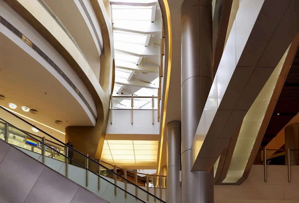 İç mekanın ortasında çatıyı da taşıyan dev strüktürün çevresinde her katta değişen planimetri ve geri çekilmelerle sağlanan değişken iç boşluk zengin perspektifler yaratmakta ve mağazalar arası görsel ilişkiyi kuvvetlendirmektedir. Çatı avlusunda oluşturulan meydan yeme içme alanlarına değer katarken, avm iki açık meydan arasında bir sirkülasyon mekanı olarak çalışır.