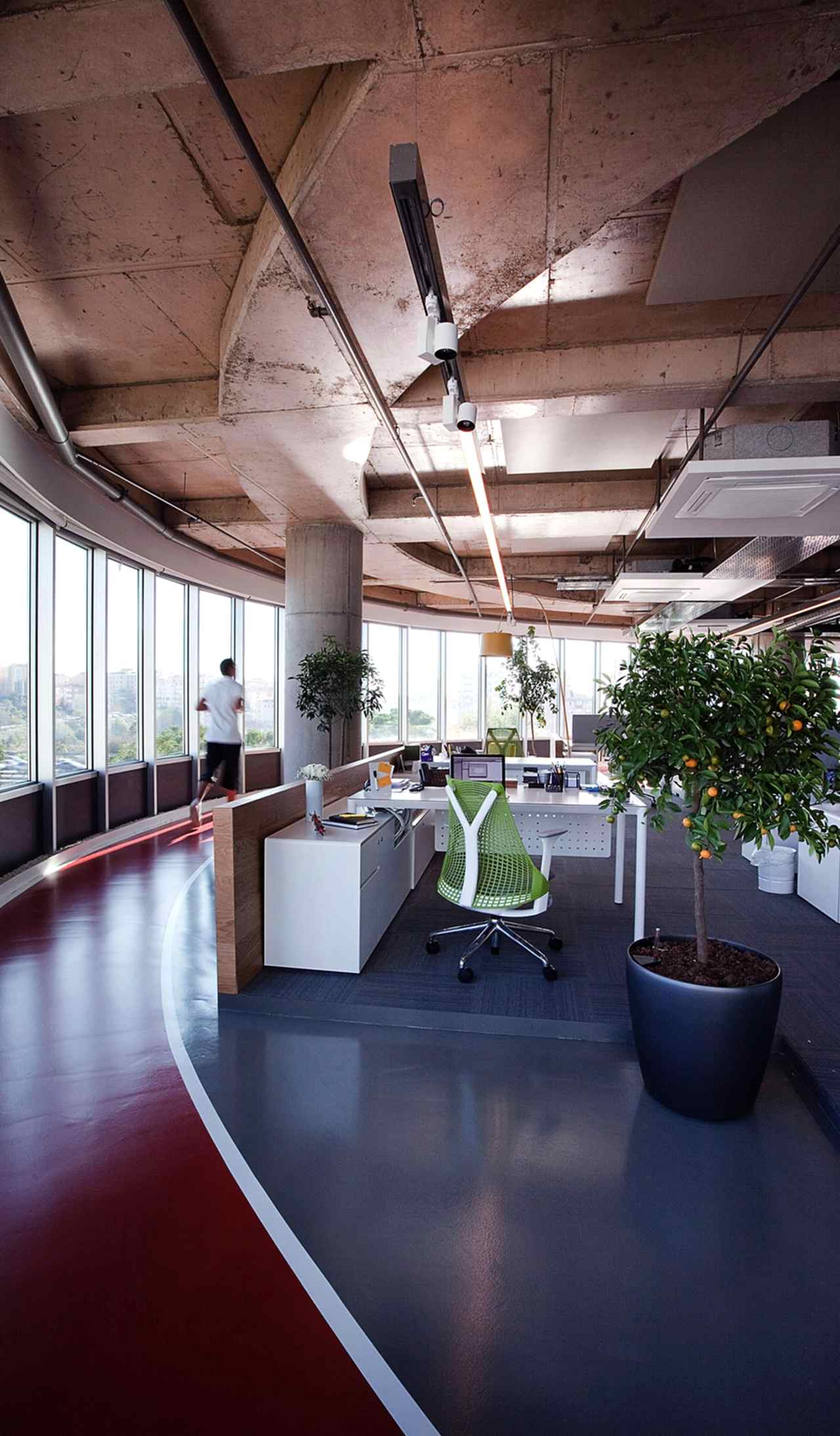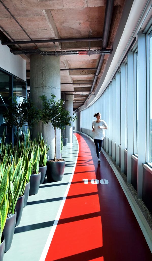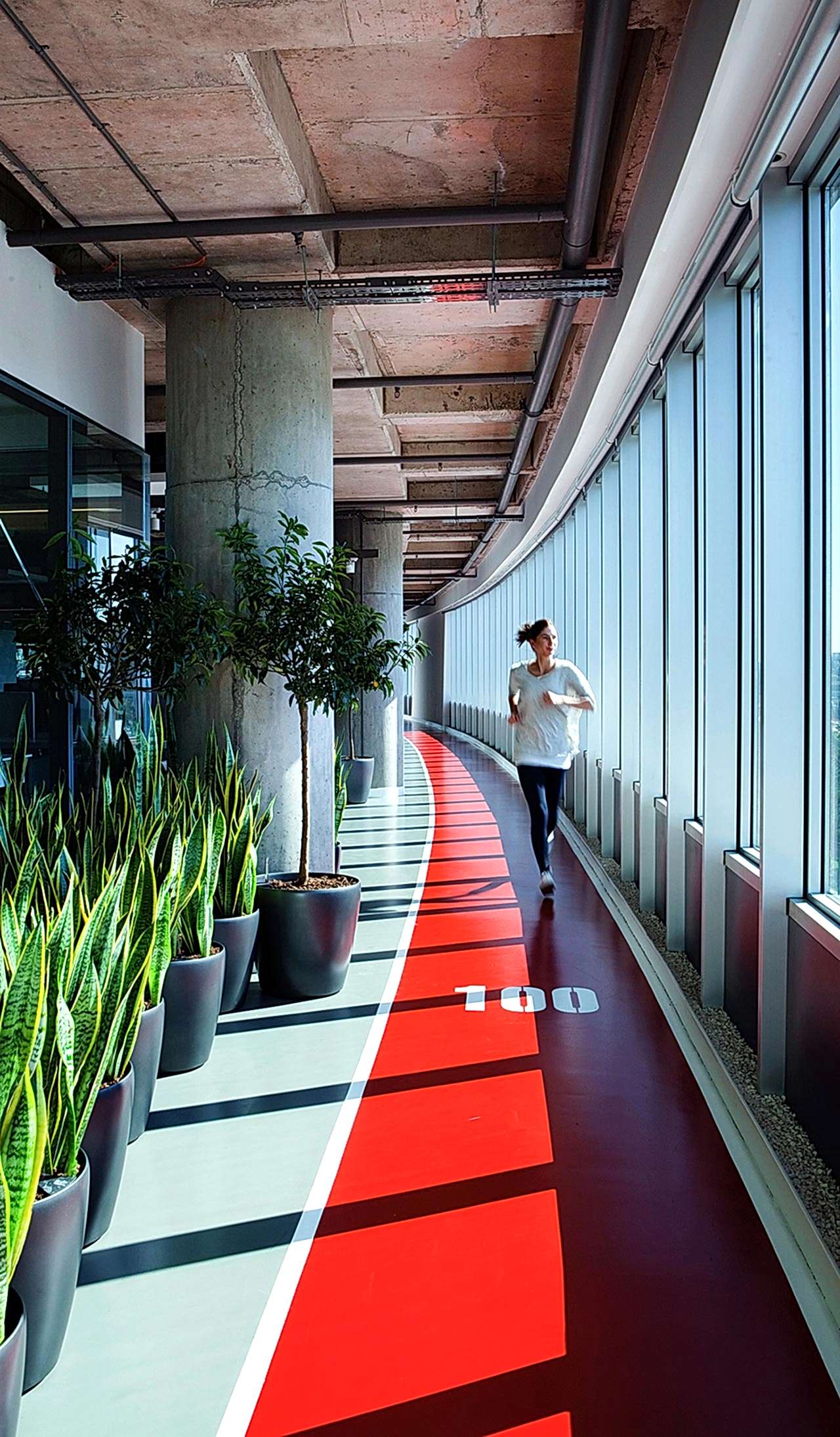 Bina cephesi ile taşıyıcı hat arasında kalan ve çevresi 250 m. eden eliptik alan koşu parkuru olarak düzenlenerek rekreatif işlevlerin çalışma alanları ile içiçe geçmesi fikri öne çıkartılmıştır. Bu katın planmasında önem verilen diğer bir konu da binanın tam merkezinde yer alan toplanma alanıdır.Mekan, çalışanların sosyalleşebileceği,aynı anda farklı toplantı modellerine mekan oluşturabilecek ,oyun odası ve TV köşesi gibi eğlenceli alanlarla güçlendirilmiştir.