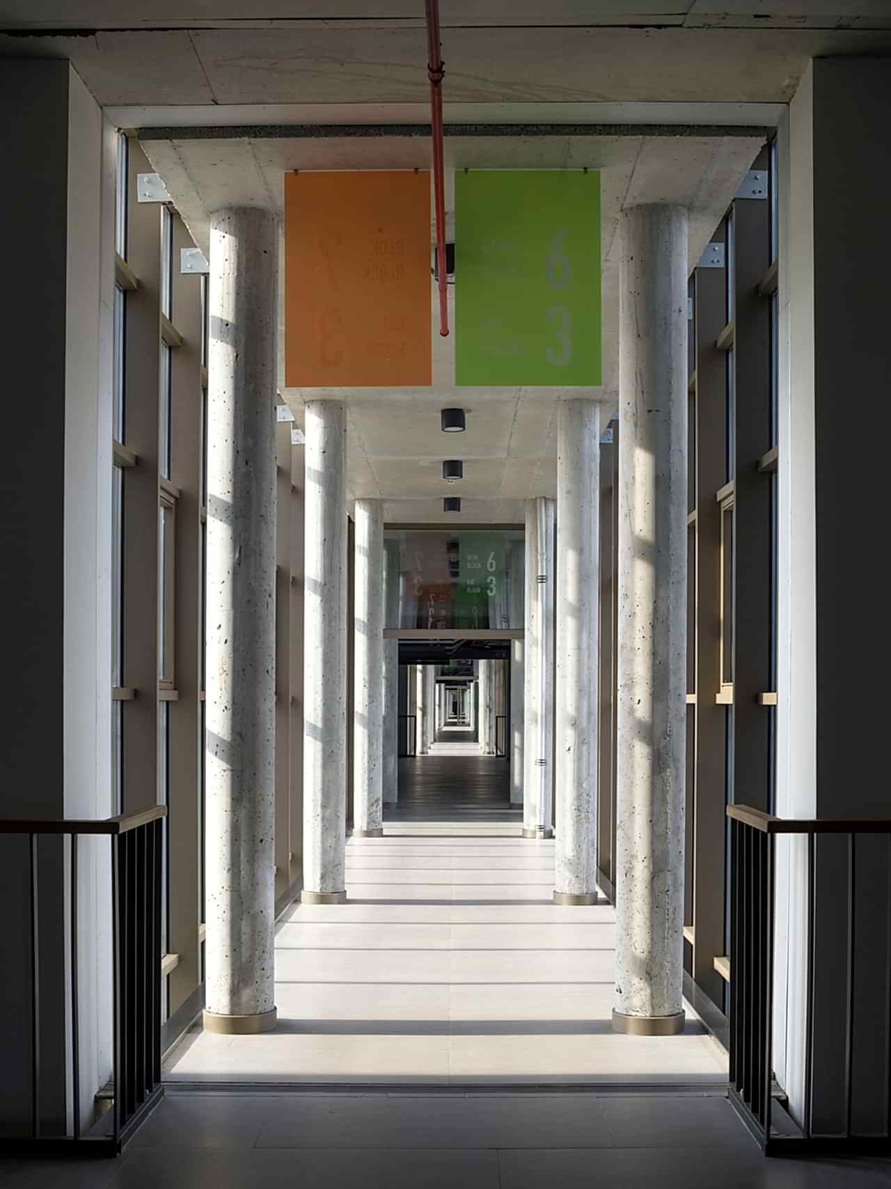 En verimli ışık alımı ve mekansal ihtiyaçlar göz önünde bulundurularak, binaların doğu cephelerine derslikler konumlandırılmış ve batı akslarında geniş koridorlar oluşturulmuştur. Batı cephesinde, katlar cepheden koparılmış ve birbirlerine çelik merdivenlerle bağlanarak, mekan algısının güçlendirilmesi amaçlanmıştır.