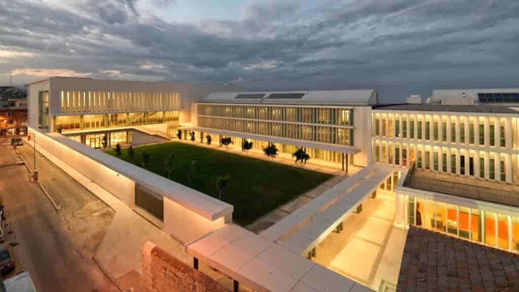 Kampüs, ihtiyaçlar doğrultusunda; 3600m² eğitim binası, 3520m² yurt binası ve 5250m² çok amaçlı kullanımların olduğu bina olarak 3 bloktan oluşmaktadır.