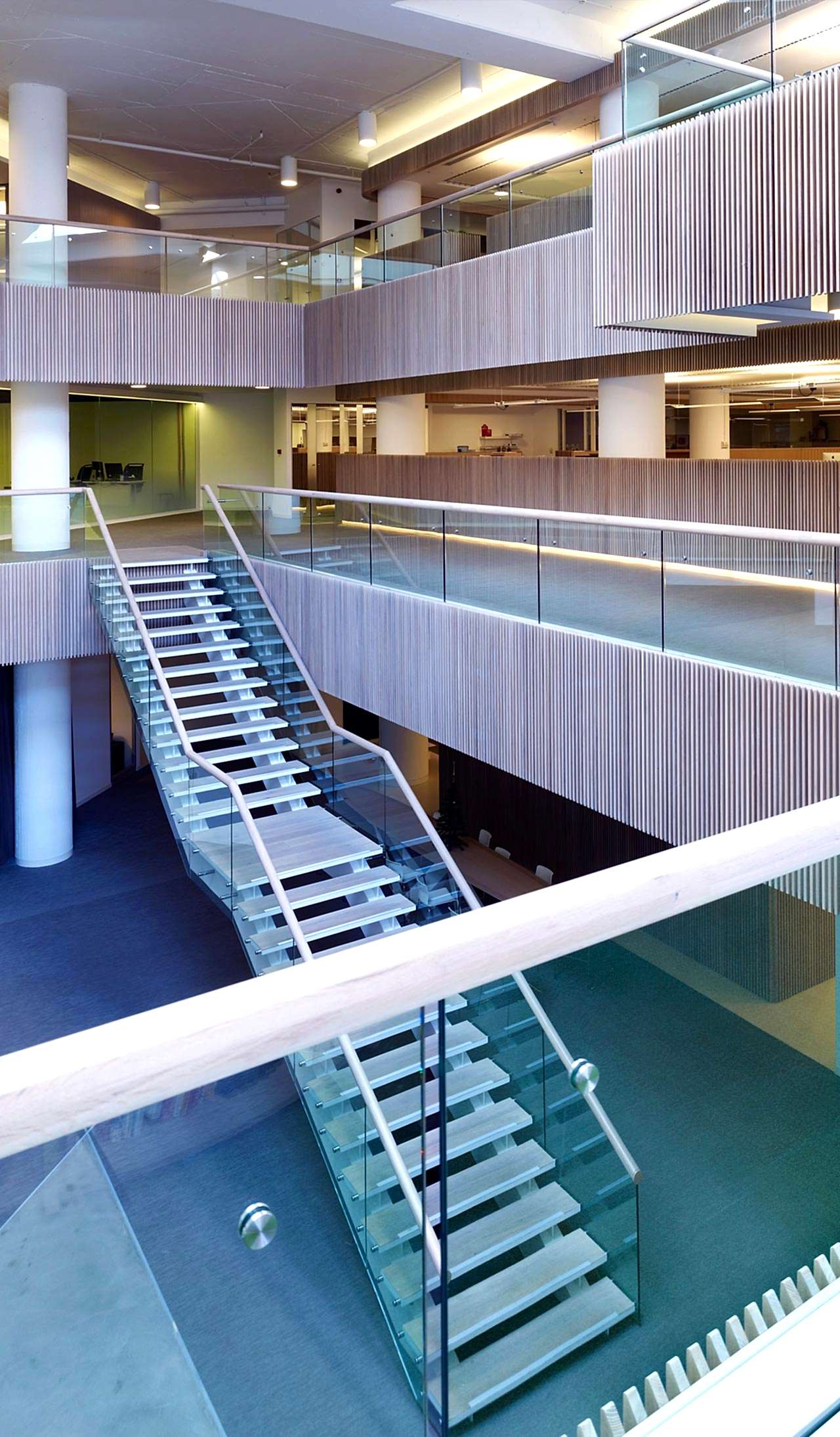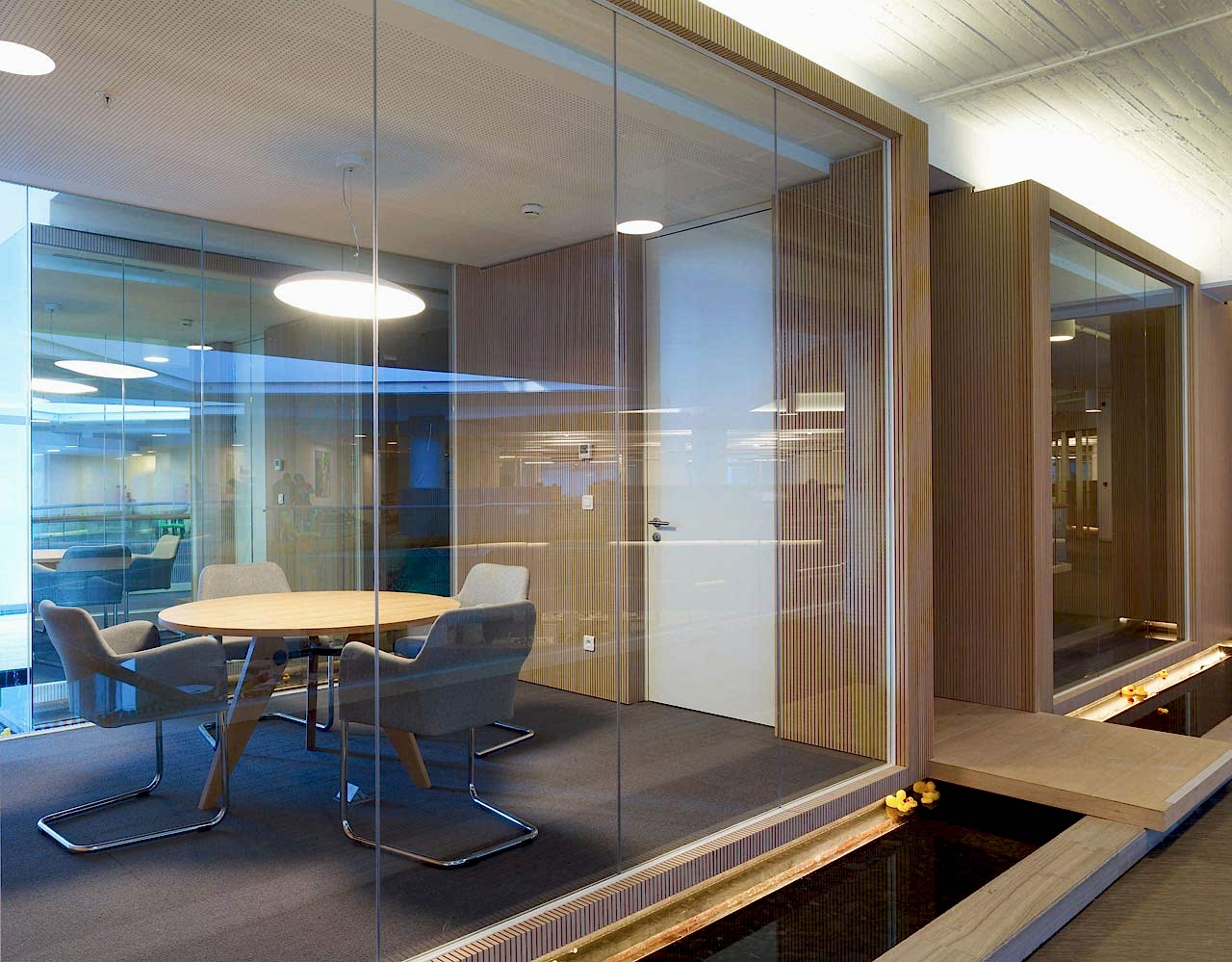 Dolaşım alanlarının sanat objeleriyle zenginleştirilerek bir galeri gibi algılanması düşünülmüş, bu nedenle proje geneline açık renkler ve açık meşe ahşap kaplama kullanılmıştır. Bu alanların etrafında şirketin farklı bölümleri konumlanarak çalışanların yaratılan ortamı gün boyunca yaşayabilmeleri amaçlanmıştır.