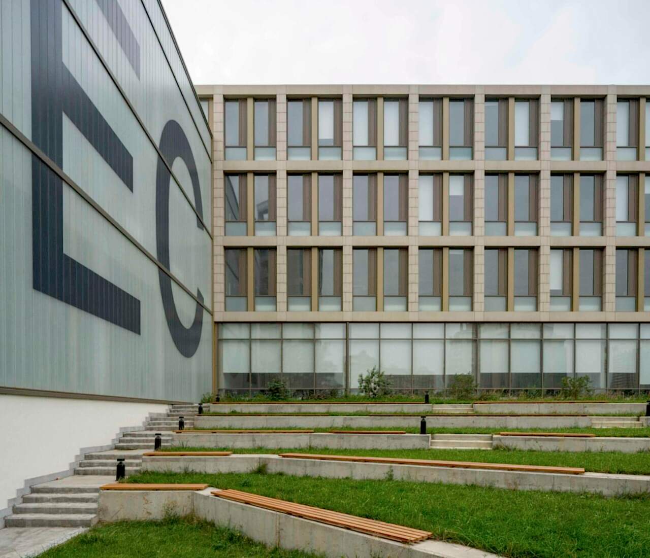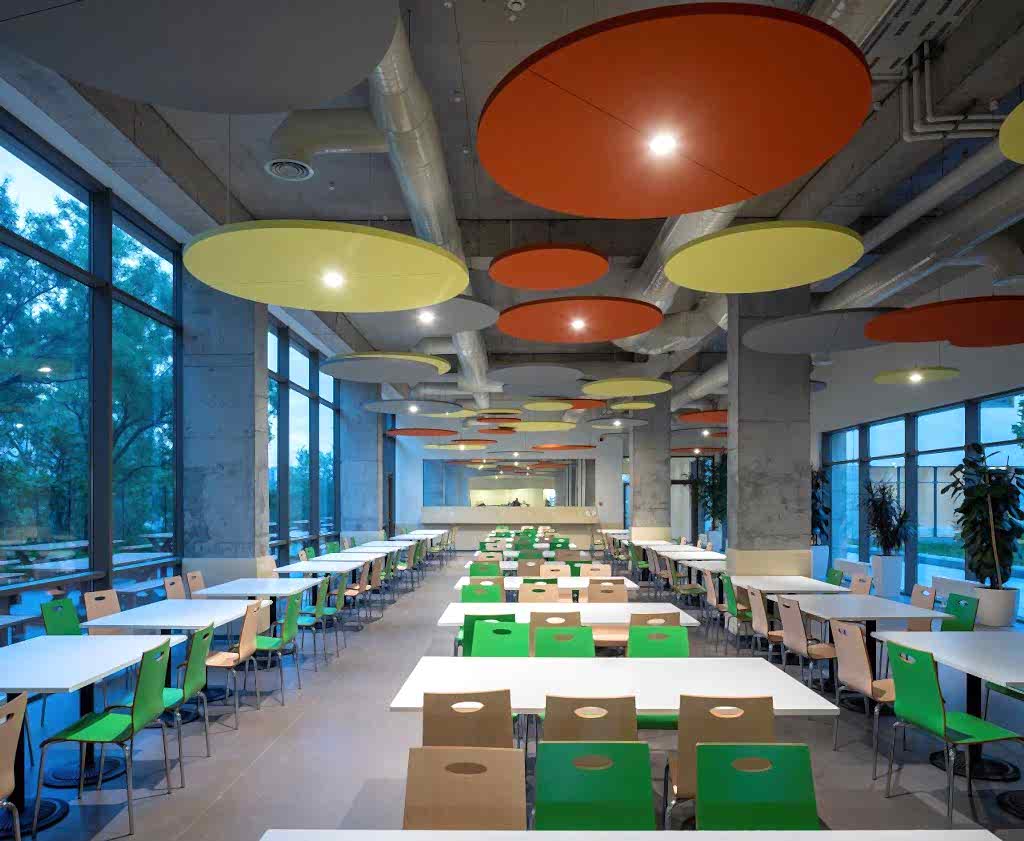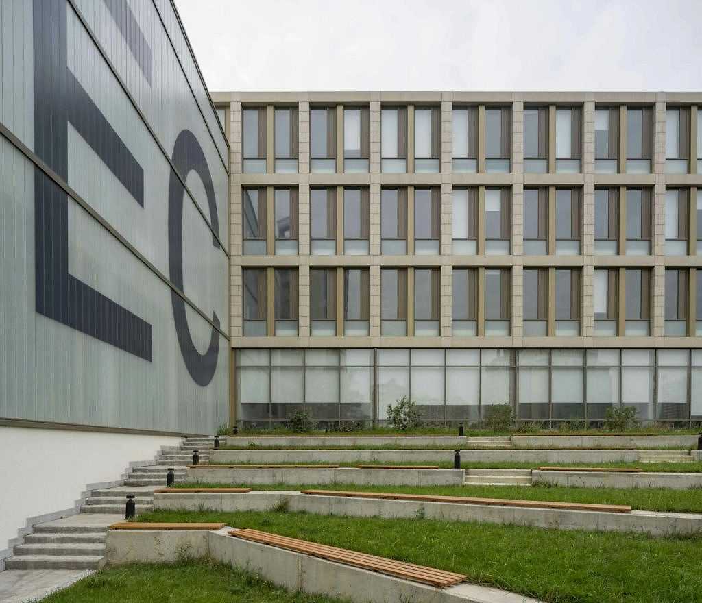Spor salonunun ve konferans salonunun tavanları, geniş açıklıklar sebebiyle çelik kirişlerle geçildi. Bu yapı, zaten korunmaya alınan tarihi duvarın arkasındaki akademik personel ve yönetim binası ile aynı kütlede yer alıyor. Cepheler U profilli cam panellerle devam ediyor. Konferans salonunda çelik kiriş içine saklı “blackout perdeler”, sürekli gün ışığıyla nötr olarak aydınlık bu mekanlarda ihtiyaç halinde ışık kontrolünü sağlıyor.
