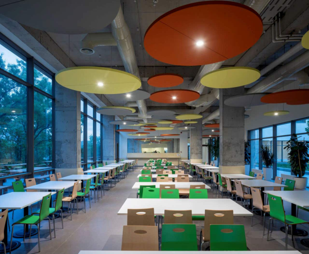 Yapı konvansiyonel betonarme sistem ile kurgulandı. Eğitim alanlarındaki akustik performans gözetilerek sınıflara giden kanallar vertikal olarak çalışıp klima santralleri çatıda çözüldü. Sınıflara giden kanallar birbirinden ayrı ve dik olduğundan koridorlardaki kanallardan kurtularak çıplak beton tavanlarla ekonomik çözümler oluşturuldu. Bu çözümler iç mekân karakterlerinin ana fikrini tanımladı.