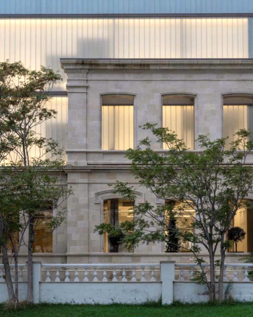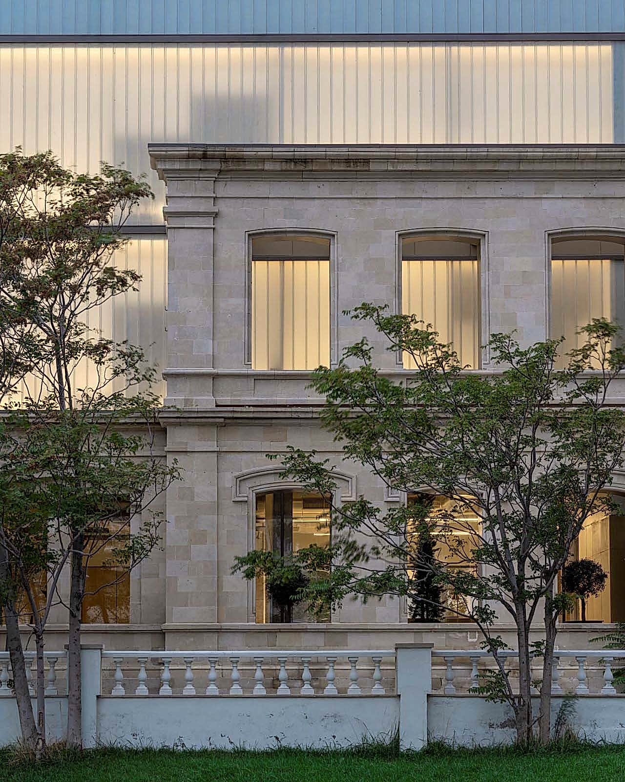 Tek başına ayakta durması için güçlendirilmesi gereken korunan duvarın içindeki boşluklar korten malzeme ile çerçevelendi ve çelik kirişler ana binaya desteklendirildi. Sövelerde kullanılan korten malzeme, avlu içindeki cephelerde de tekrar edildi. Korunan duvara hiçbir şekilde çimento bazlı bir malzeme ile müdahale edilmemesi sağlandı.