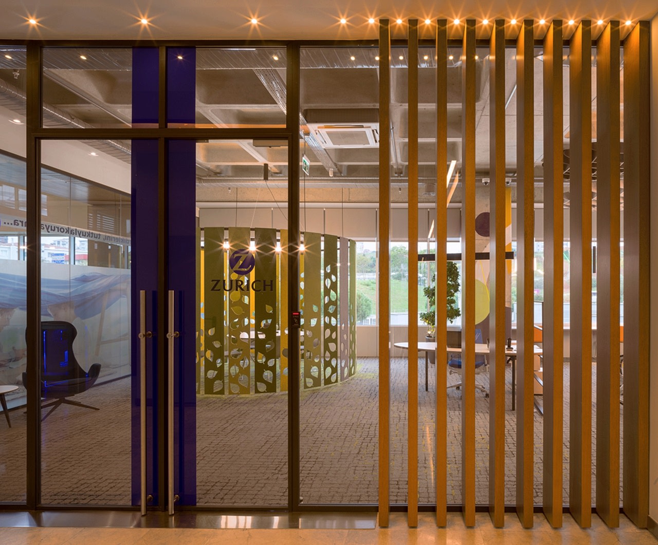 Zurich sigorta Anadolu müdürlüğü için Nida Kule Göztepe binasının giriş katında 250m2 lik ofis iç mekan düzenlemesidir.