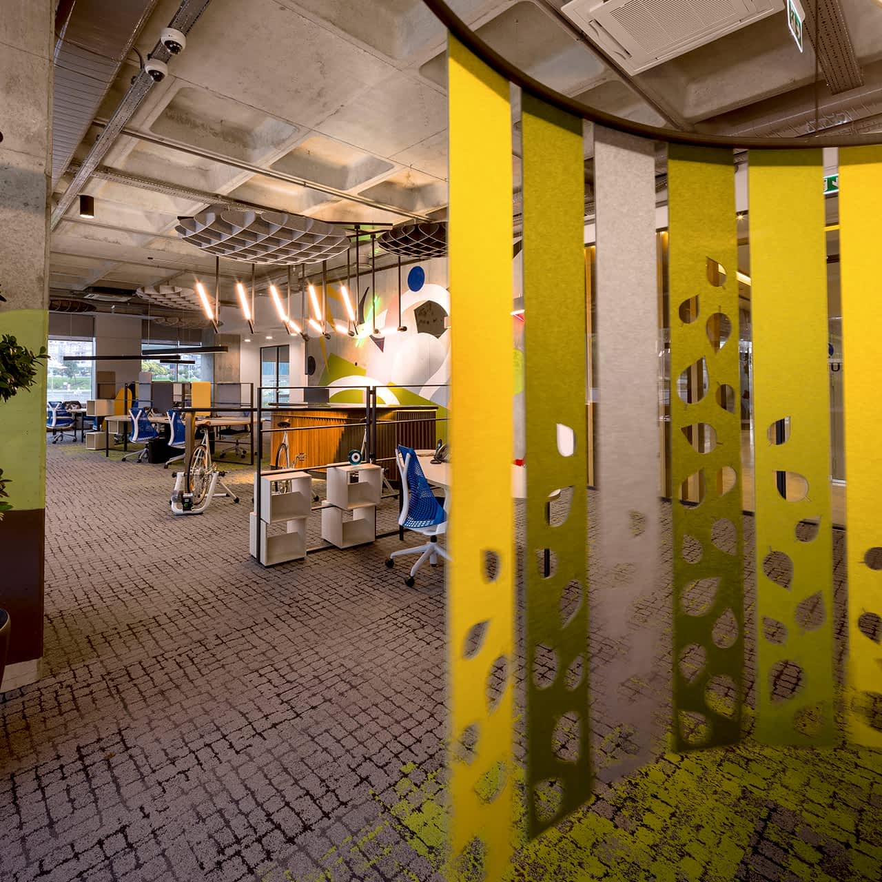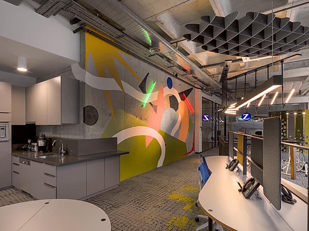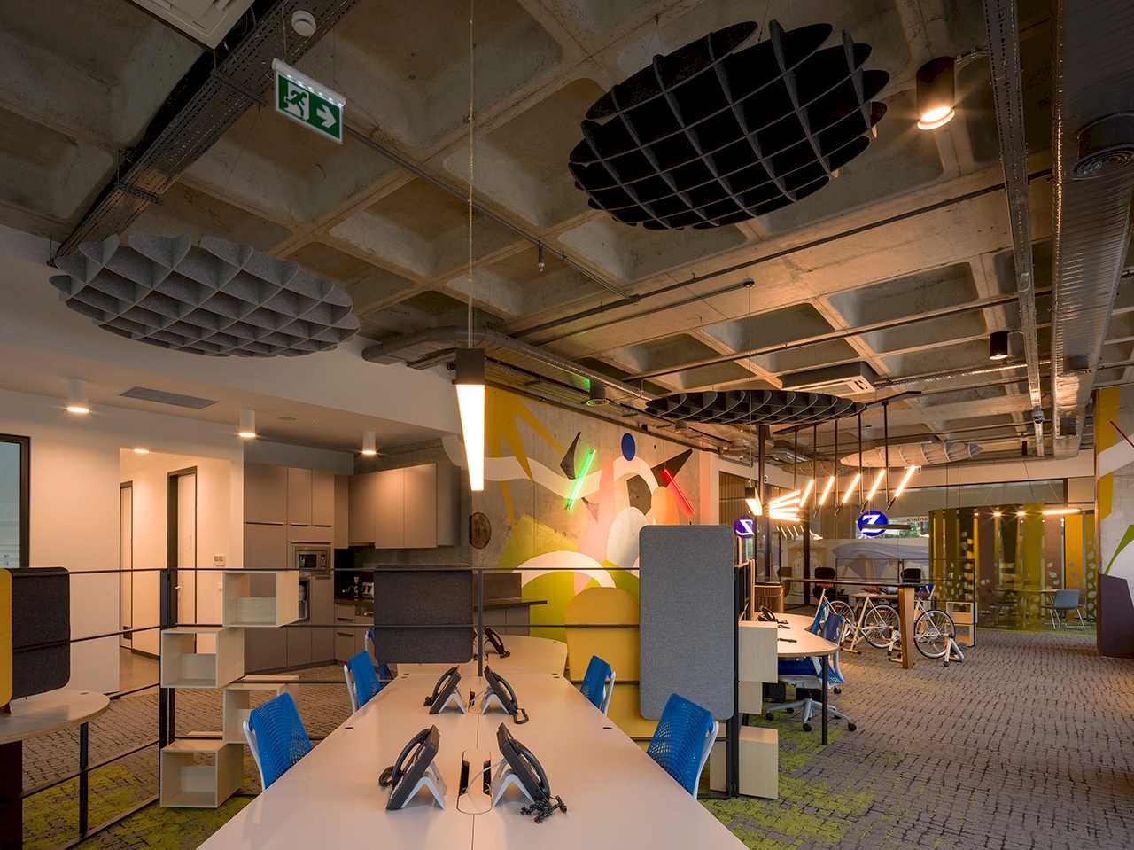 Düzenli olarak 13 kişinin çalıştığı ofiste çalışma alanlarının konforu ile beraber dinlenme ve eğlenme alanları yaratılmaya çalışılmıştır. Bar taburesi olarak bisiklet kullanılması, mekana özel graffti uygulaması, kolonlar üzerinde kullanılan lambalar ile istenen sokak konsepti vurgulanmıştır.